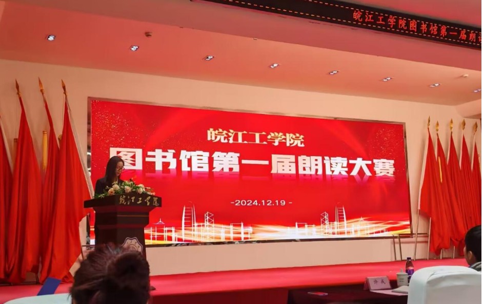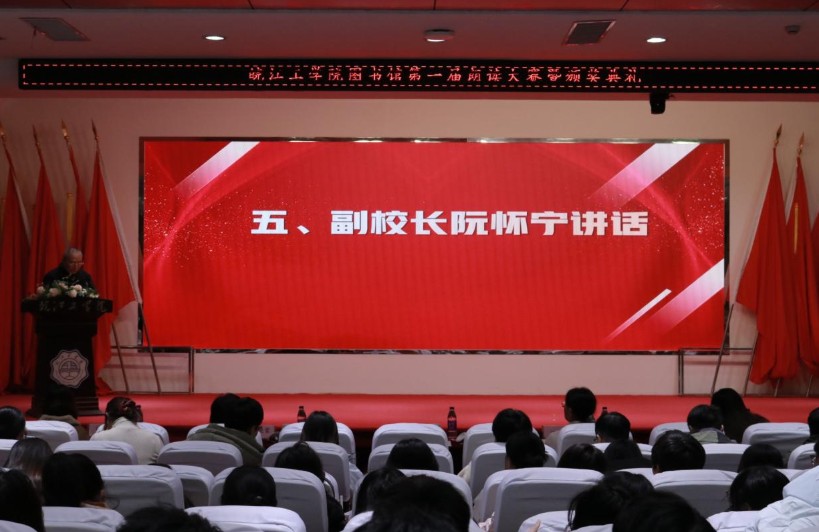 12月19日下午,一场别开生面的朗读大赛活动在今年会霍里山校区图书馆报告厅圆满举行,众多师生齐聚一堂,共同见证了知识与声音交织的精彩时刻。副校长阮怀宁,教务部部长江冰,图书馆陈馆长,团委书记、学生工作部副部长尚贤燕,学生工作部副部长许戎,各二级学院分团委书记、图书馆全体工作人员、部分学生代表参加了活动。