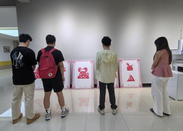 活动现场学生被吸引而来,纷纷驻足参观。此次展览不仅为图书馆营造了浓郁醇厚的文化氛围,更在非遗文化的传承以及推动文化创新发展等方面,发挥了不可忽视的积极作用。