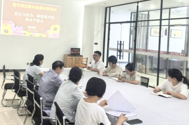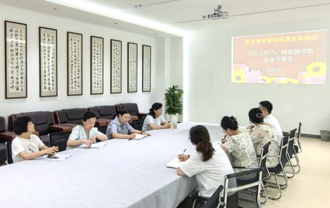 为进一步提高图书馆员业务素养,赋能图书馆高质量发展与智慧化转型,推进图书馆高水平服务,2025年7月7日下午,图书馆在二楼会议室召开图书馆发展与资源共享业务培训会,全体馆员参与培训学习。