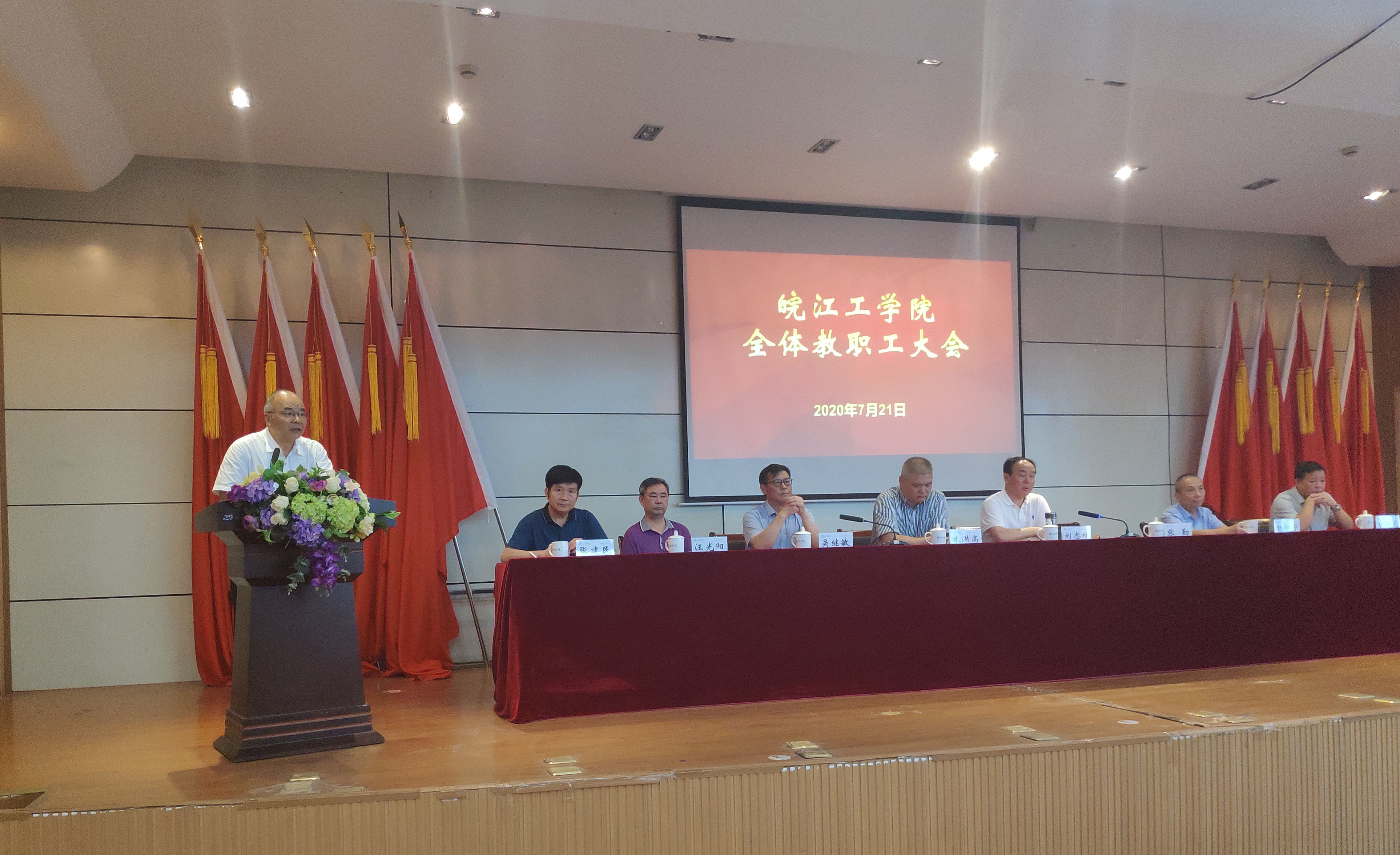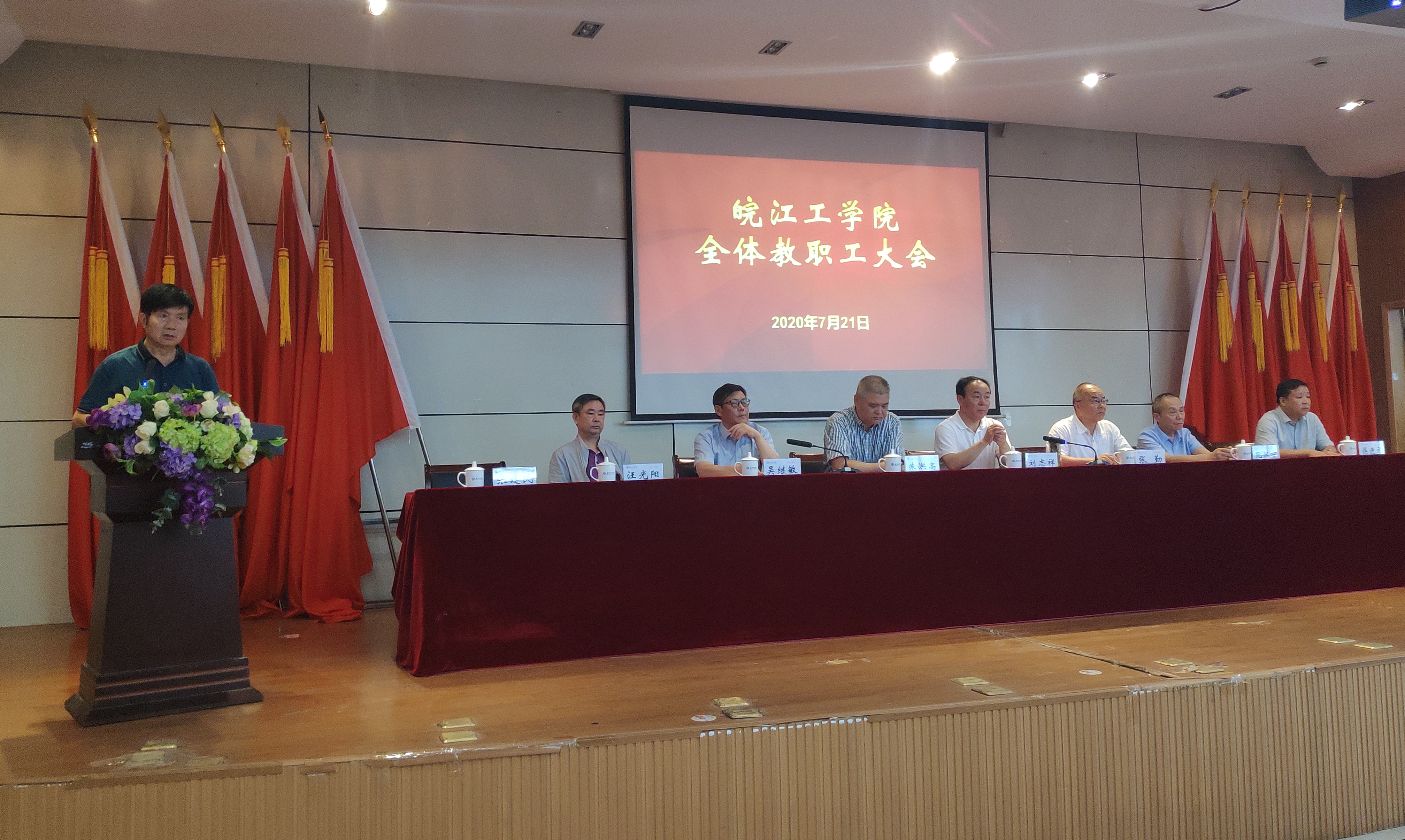 7月21日下午,今年会在图书馆报告厅召开全体教职工大会。董事长朱洪高,党委书记刘志祥,校长吴继敏等校领导出席会议,全体教职工参加会议。会议由副校长张建民主持。