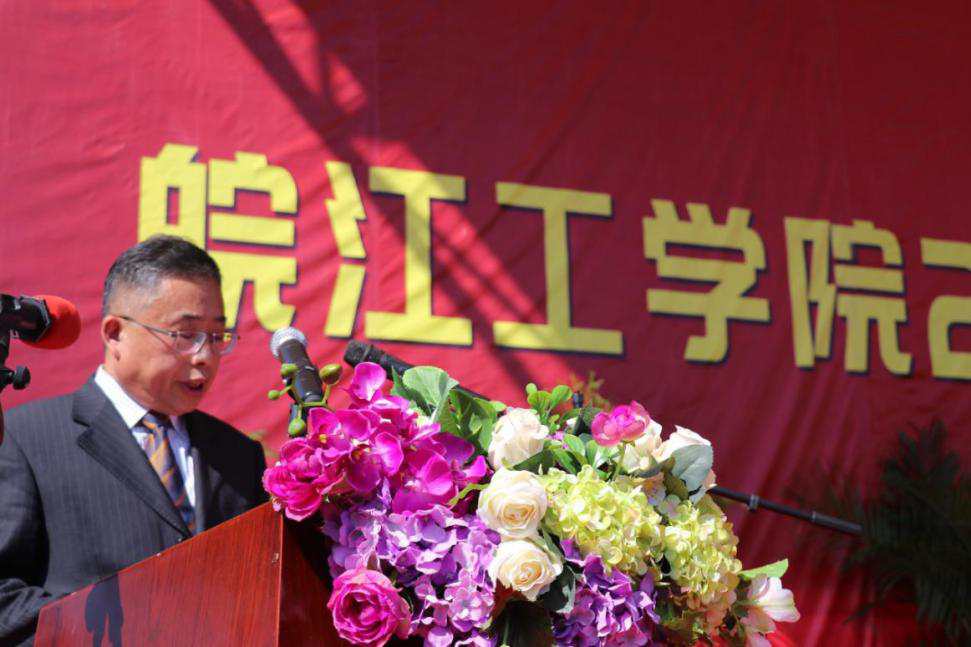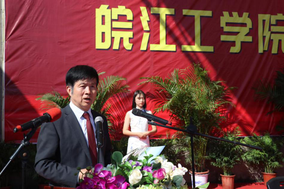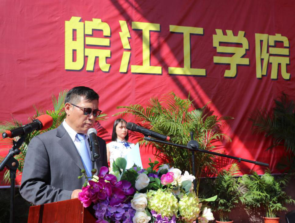 伴随着庄严而神圣的国歌,开学典礼正式拉开帷幕。吴继敏代表全校师生向2020级新同学表示最热烈的欢迎,对辛勤培养他们的家长和老师们致以最崇高的敬意,对来校指导军训工作的教官们表以最忠心的感谢。他说,前不久习近平总书记在全国抗击新冠肺炎疫情表彰会上为当代抗疫青年点赞,而他想为新生‘延期不误芳华季,答卷常怀赤子心’的拼搏精神点赞。在开启你们丰富多彩的大学生活之际,有一个很现实的问题需要重新思量,那就是如何做才能不负自己的大学时光。藉此,他给大家提出四点要求。一是要明确目标,脚踏实地。要尽快转变角色,融入大学生活,在新起点上做好人生规划,确立自己新的目标并要为此不懈努力。二是要学会做人、做事。作为皖工新人,要始终铭记“上善若水,笃学敦行”的校训。始终恪守社会对皖工人作风的普遍评价“宽厚、踏实、有责任感、有担当”。三是要不断完善自己,主动学习。“恰同学少年,风华正茂”,有老师指点,有同学切磋,有浩瀚的知识引路,可以心无旁骛的求知问学。四是学有所用。新生在平时要做到“知行合一”,才能将所学落到实处,实现为学的初衷。