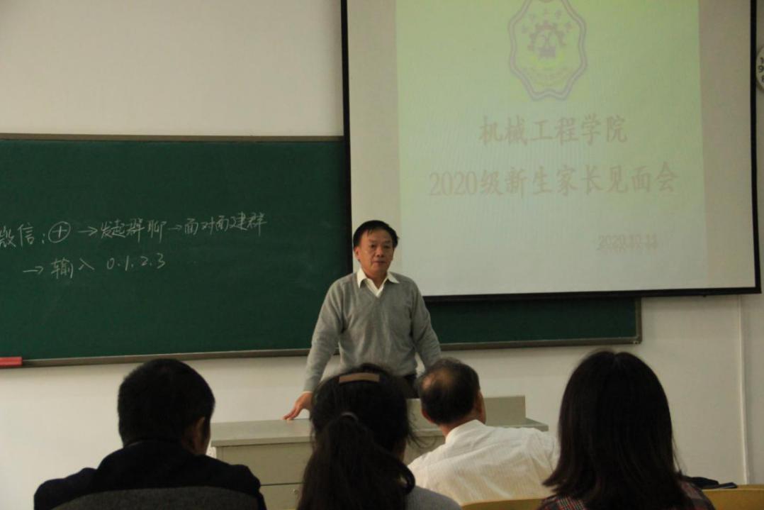 机械工程学院新生家长见面会在郑蒲港校区C104举行,党总支书记李永金,院长赵恒文等负责人出席会议。赵恒文为新生家长们介绍了学院及各个专业的相关状况和各学科专业人才培养计划。他说,我院偏理科些,相关内容较难,希望孩子们能将这块“硬骨头”啃下来,努力学习,不负大学时光。
