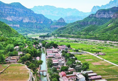 红旗渠总干渠从秀丽祥和的村庄穿过。新华社发