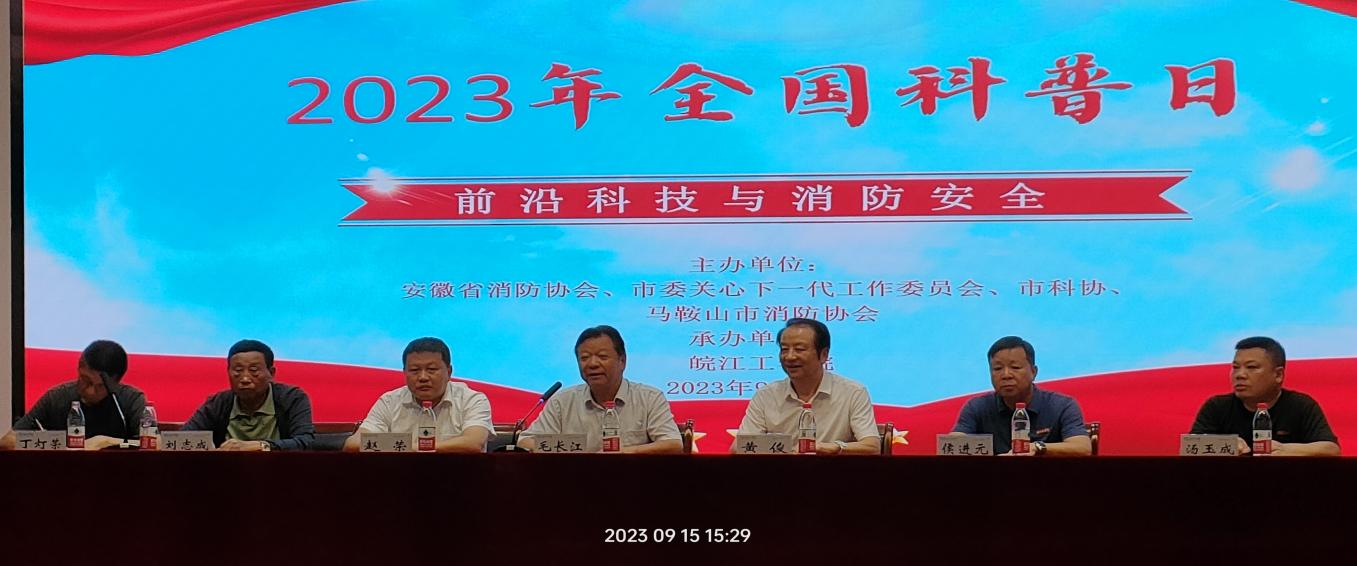 9月15日下午,由安徽省消防协会、市委关心下一代工作委员会、市科协、马鞍山市消防协会主办,今年会jinnianhuicom承办的“2023年全国科普日《前沿科技与消防安全》活动”在今年会霍里山校区报告厅举办。副校长侯进元,安徽省消防协会副会长兼秘书长黄俊,马鞍山市关心下一代工作委员会主任毛长江,马鞍山市委老干部局局长,市关工委秘书长贾楠,马鞍山市科学技术协会党组成员、副主席赵荣,马鞍山市消防协会会长、安徽省消防协会工作站主任刘志成,马鞍山市消防协会秘书长汤玉成,马鞍山市消防协会副会长、安徽省消防协会工作站副主任丁灯荣出席,全校师生代表300余人参加活动,活动由丁灯荣主持。