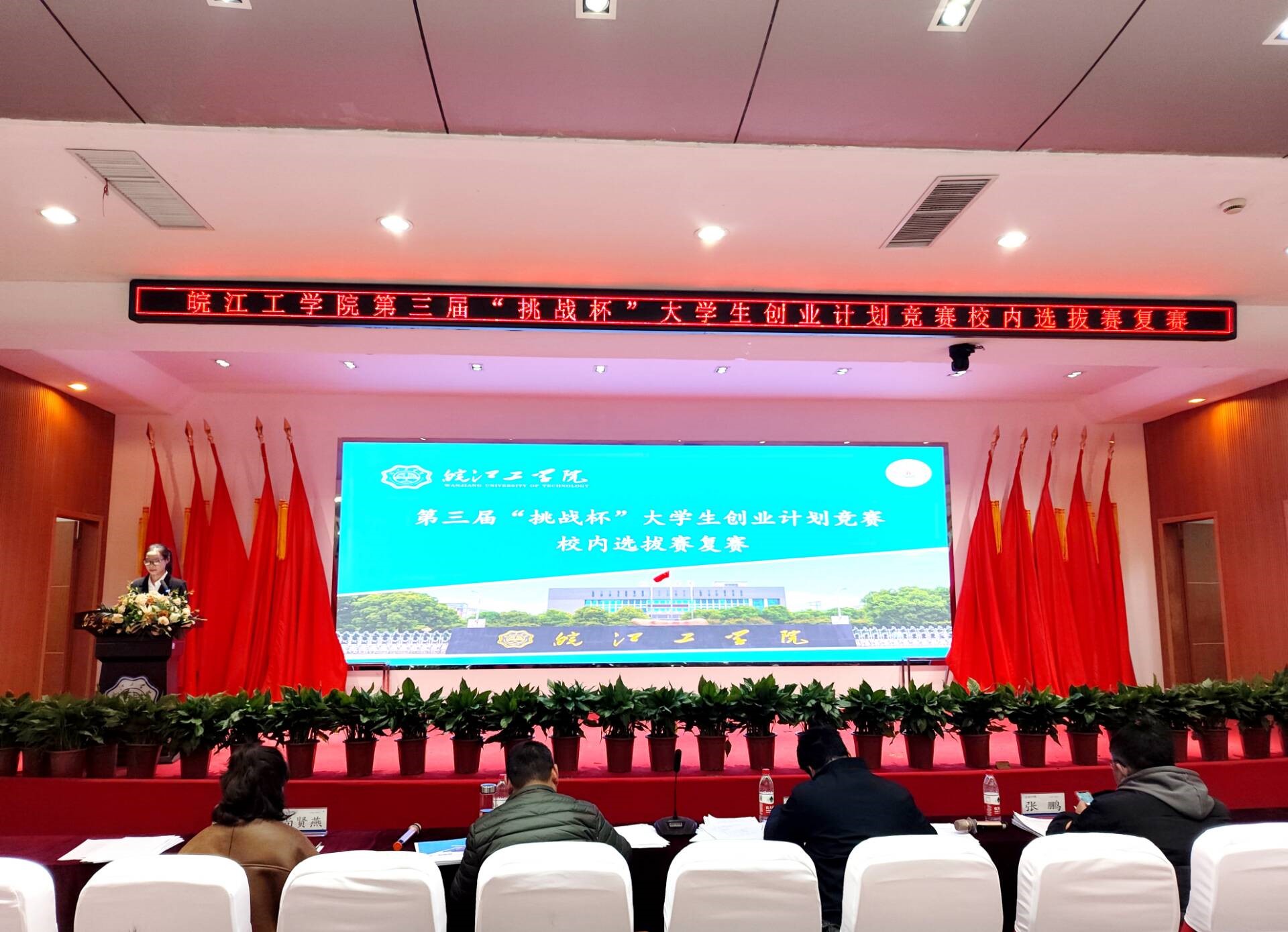 为深入学习贯彻习近平新时代中国特色社会主义思想,贯彻落实国家双创工作部署,进一步聚焦为党育人功能,今年会于2023年12月29日在霍里山校区图书馆报告厅成功举办了第三届“挑战杯”大学生创业计划竞赛校内选拔赛复赛。今年会jinnianhuicom教务部副部长葛文生,科技部副部长胡徐胜,校团委书记尚贤燕,水利工程学院院长助理兼水文教研室主任张鹏,创新创业学院指导教师周宇赫共同参与本次竞赛的评审工作。