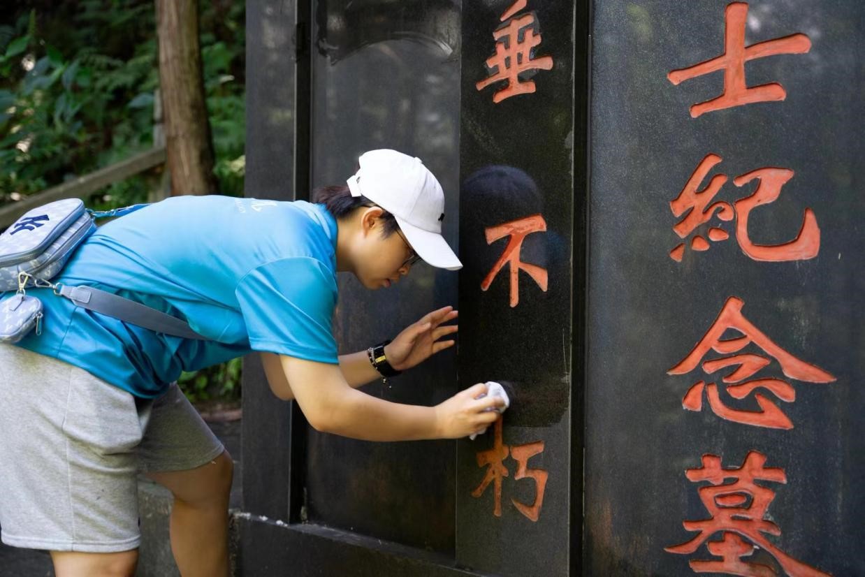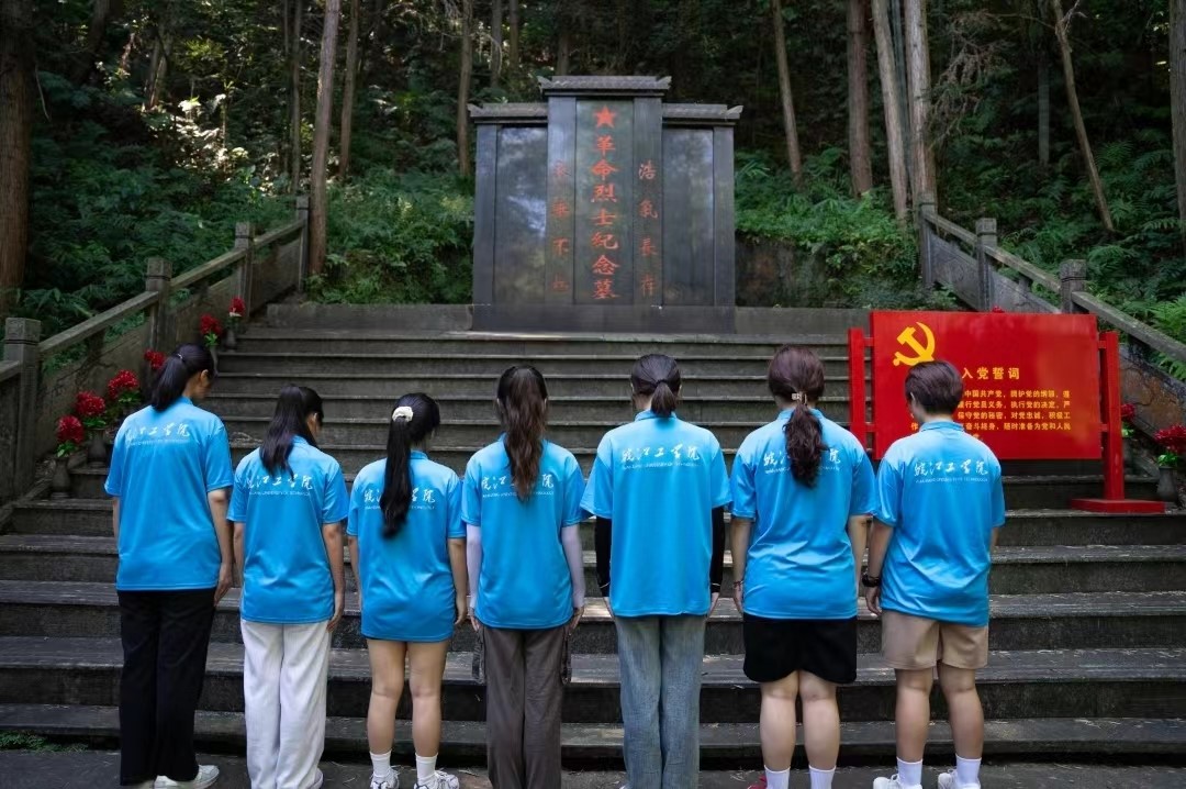 7月4日实践团队来到小练革命展示馆,了解黄山市第一个党支部的建设历程、小练惨案始末,以及刘柏林、宁春发等人的革命事迹,让实践团队深刻领悟到革命的艰辛历程,切实感受红色精神力量,传承和发扬红色基因。随后,沿着一阶一阶青石台阶向上,实践团队来到革命烈士纪念墓之前,通过扫墓、默哀、重温入党誓词,以此来深切缅怀革命先烈,寄托无限哀思。
