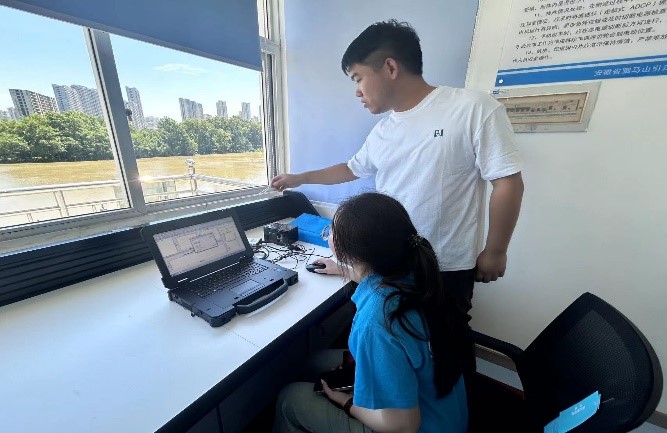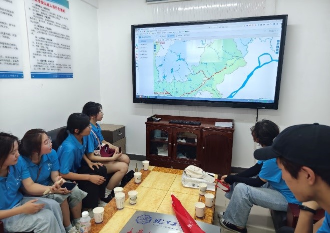 实践团队成员在工作人员指导下,步入测流缆道房,听取ADCP 测流原理介绍并实操测流,亲身体会水文数据的采集过程。