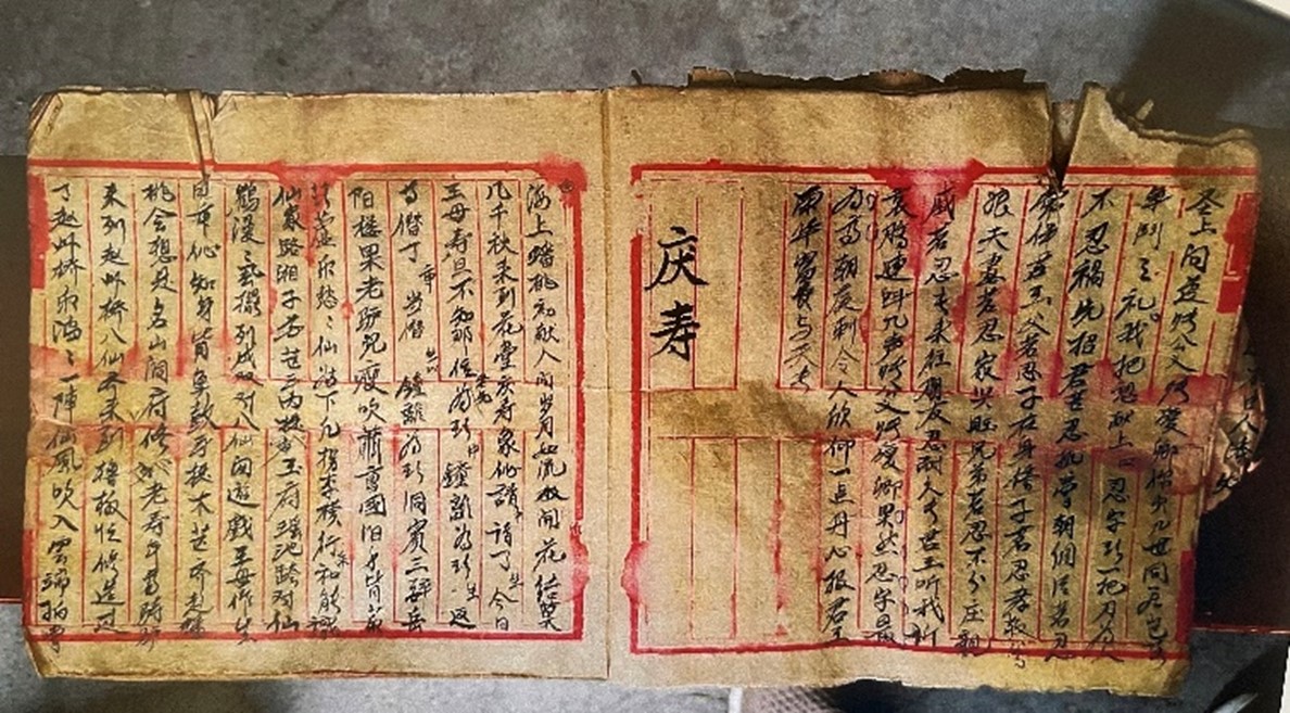 三下乡实践团来到了松泉村非物质文化遗产曲子戏传播基地,并在传承人的带领下近距离体验并记录了曲子戏围鼓座唱和走唱两种形式。田书民老先生向三下乡实践团即兴演示了最出名的《送子》,并详细讲解唱演曲子戏全流程,实践团成员在传承人的指导下,体验了不同角色服道的特色、不同的曲谱对应的曲调、曲谱中的喜怒哀乐。