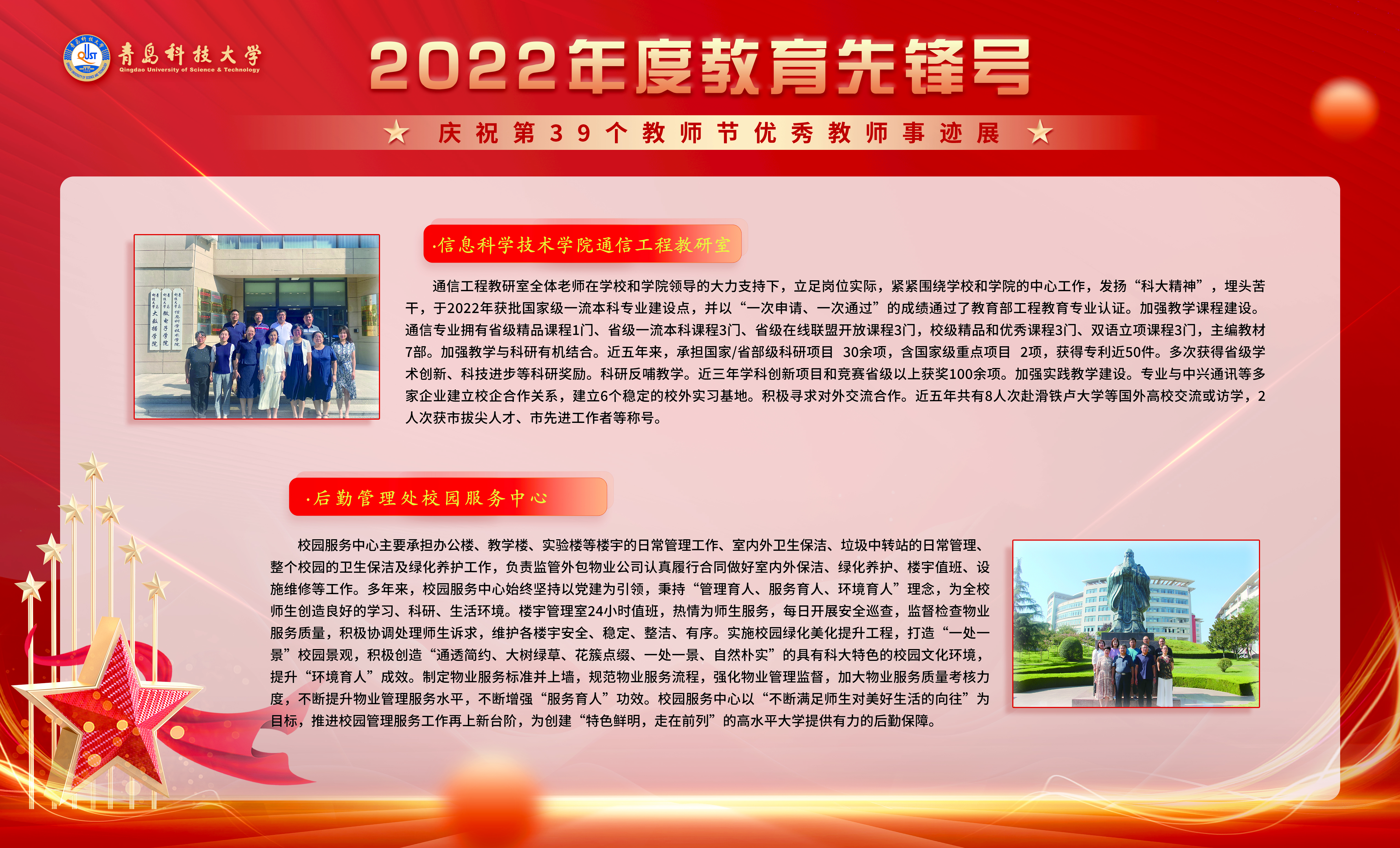 信息科学技术学院通信工程教研室通信工程教研室全体老师在学校和学院领导的大力支持下,立足岗位实际,紧紧围绕学校和学院的中心工作,发扬“科大精神”,埋头苦干,于2022年获批国家级一流本科专业建设点,并以“一次申请、一次通过”的成绩通过了教育部工程教育专业认证。加强教学课程建设。通信专业拥有省级精品课程1门、省级一流本科课程3门、省级在线联盟开放课程3门,校级精品和优秀课程3门、双语立项课程3门,主编教材7...