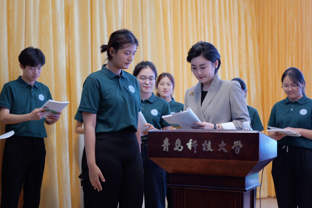 10月14日下午,全国公共课教材《学生礼仪》主编、知名礼仪专家朱珊珊受邀做客“科大讲坛”、“她”论坛,以“‘立德树人,以礼为先’新时代师生文明礼仪素养”为题,为学校新入职教师、崂山校区学生代表作报告。学校党委常委、宣传部部长张洪坤出席报告会。妇女委员会主任李淑贞主持报告会。