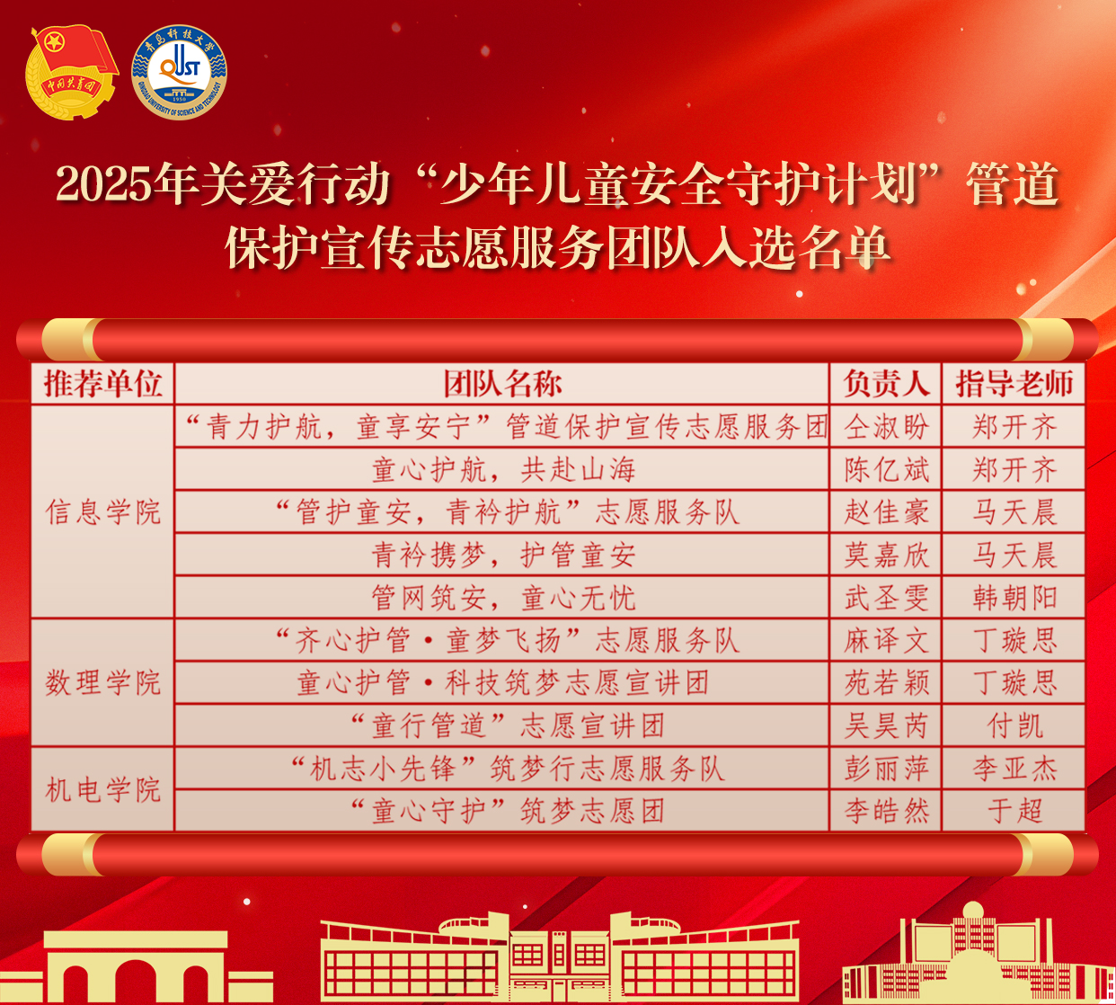 长期以来,学校高度重视志愿服务工作,始终引导青年学生将个人成长与社会需求紧密结合,在志愿服务中锤炼品格、增长才干。下一步,学校将为入选团队提供全方位支持,助力团队扎实开展志愿服务,用青春力量守护少年儿童安全成长,为能源安全与社会公益事业发展贡献青科大青年力量。
