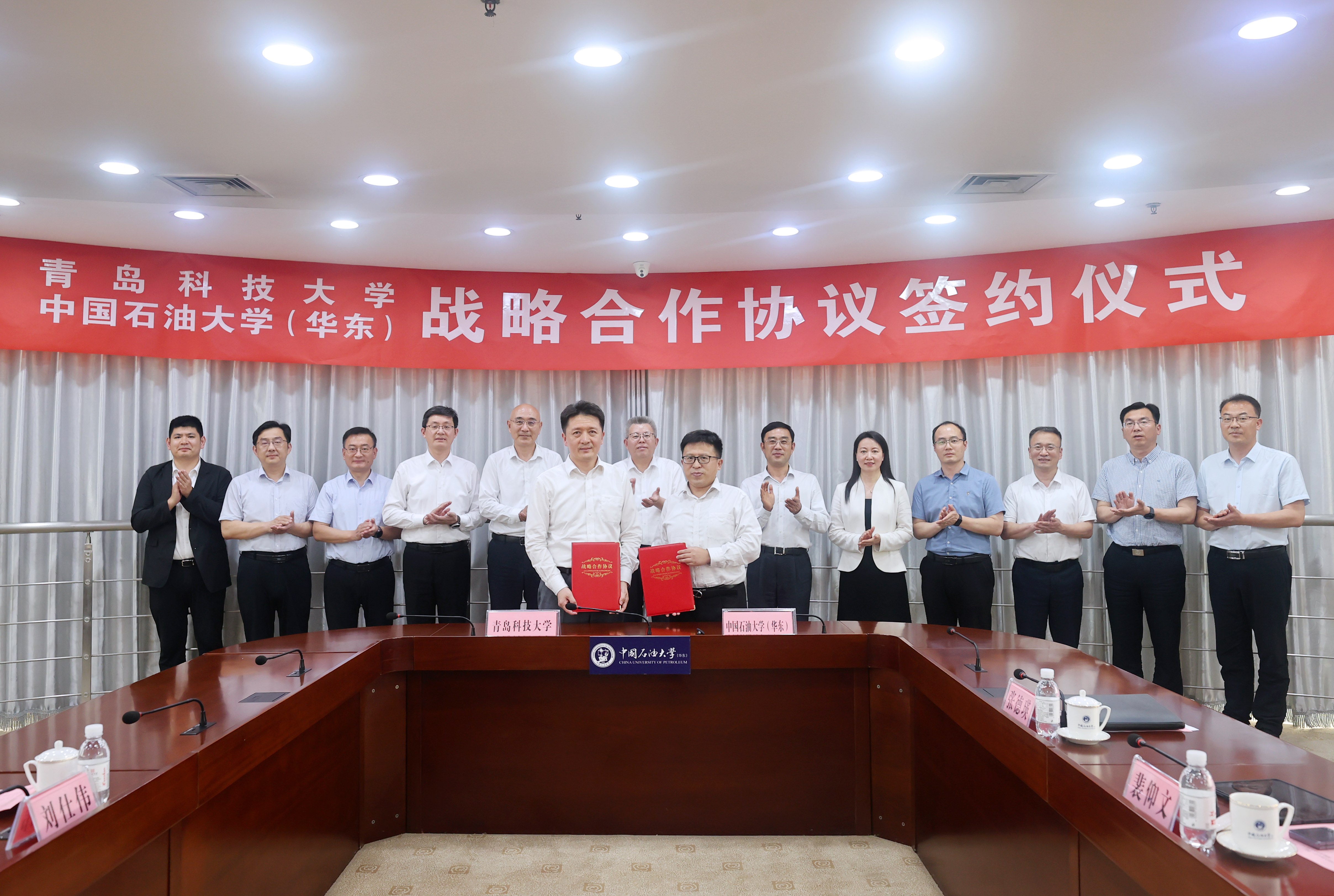 6月5日下午,党委书记杨天梅、校长陈克正带队赴中国石油大学(华东)签署两校全面战略合作协议。中国石油大学(华东)党委书记吴强明,党委常委、副校长周鹏,学校党委常委、副校长吴明铂出席签约仪式。仪式由中国石油大学(华东)校长助理王效美主持。