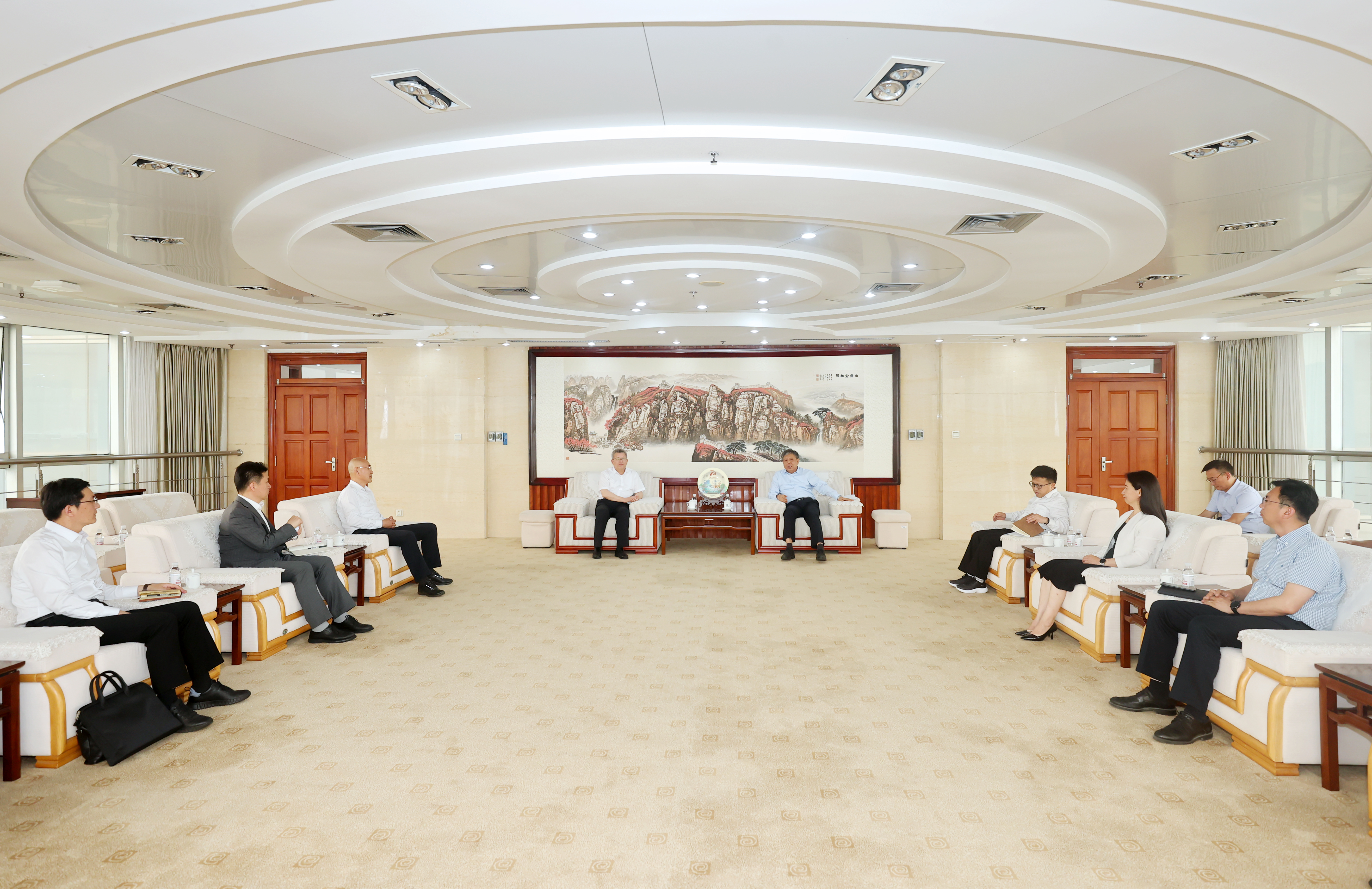 签约仪式前,中国科学院院士、中国石油大学(华东)校长郝芳与杨天梅、陈克正一行进行了会谈交流。郝芳表示,两校作为同城高校,长期以来保持着密切的交流合作,形成了互相支持、协同发展的良好局面,期待双方以此次协议签署为契机,在科技成果转化应用、服务山东省经济社会发展、国际化办学、创新型人才培养等领域深化合作,通过经验互鉴、资源共享、优势互补,全面推进新时代校校融合发展,携手打造高水平大学合作典范,促进双方高质量发展。