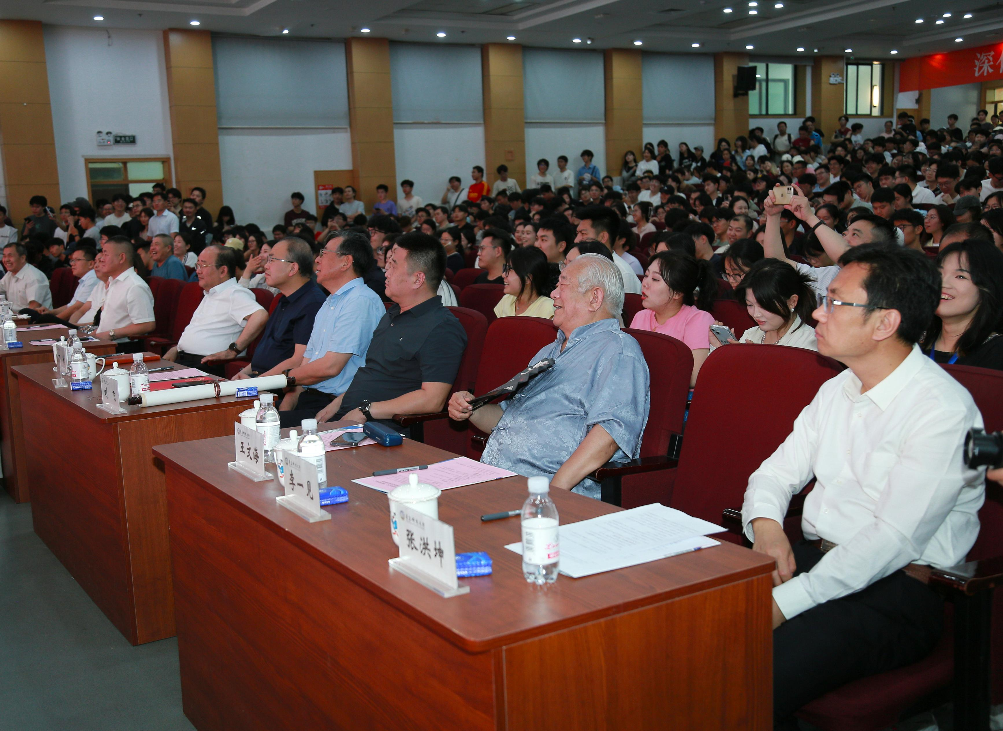 在“科大讲坛”上,身着红色外套的六小龄童精神矍铄,不断向现场观众挥手致意、合影留念。随着六小龄童一声“俺老孙来也”经典台词喊起,引发现场观众热烈鼓掌欢呼。六小龄童以“传承传统文化 共筑书香科大”为主题,讲述了《西游记》拍摄幕后故事、猴戏艺术渊源、个人从艺感悟,分享阅读对其艺术创作和人生成长的影响,鼓励大家多读书、悟经典,从传统文化中汲取勇敢、正义、执着的力量。活动期间穿插“美猴王”经典动作表演,六小龄童手持金箍棒,火眼金睛的神韵、行云流水的动作重现了荧幕中“美猴王”的灵动风采,现场师生踊跃参加互动表演,将活动推向高潮。