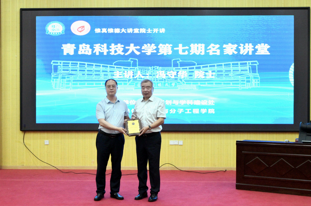 罗细亮主持报告会并代表学校向冯守华院士颁发纪念奖牌。