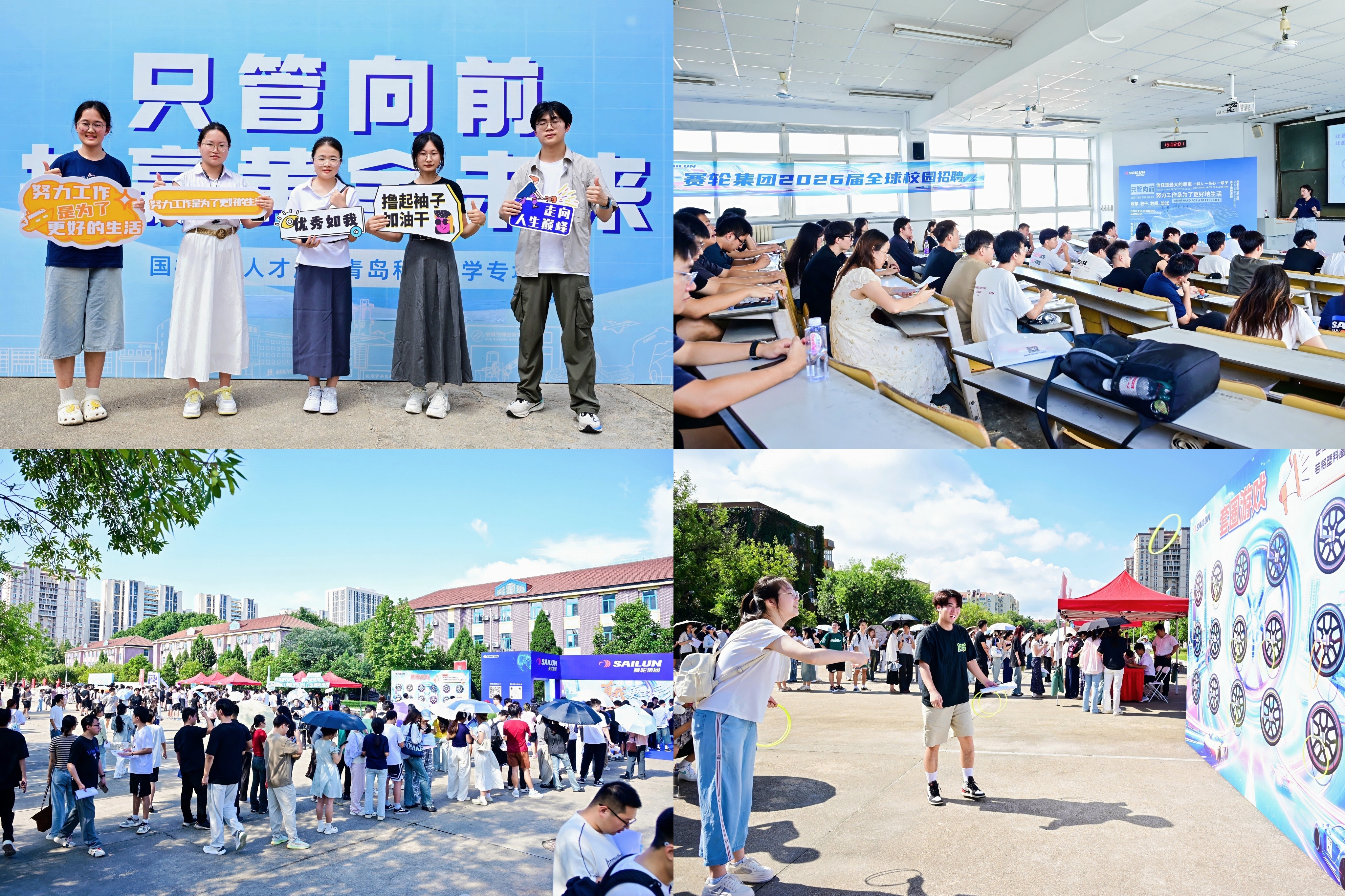 活动共有赛轮集团、软控集团、益凯新材料等10余家国橡中心各产业链企业组团来校开展招聘,提供研发、生产、管理等各类优质岗位1500余个。现场人头攒动、气氛高涨,形式新颖、亮点颇多。本次活动中,首次设置赛轮集团“女性求职咨询专栏”,专门设立市场服务岗、国际订单管理岗、高管助理岗和人力资源管理岗专区,设计套圈游戏、足球射门、“职途答疑出彩未来”等游戏娱乐和生涯互动专区,极大地提升了毕业生关注度和参与度。1000余名毕业生积极向心仪的企业投递简历,与企业招聘人员交流互动,仔细了解招聘信息。面对已连续开展五届的国橡中心人才周这一重要平台,很多毕业生早早做好了自己的规划。“我已经明确要留青就业,每年学校组织的首场秋招活动,都是校友企业,也是对我校毕业生非常青睐的企业,不仅岗位数量多而且质量好,感谢学校用心提供的各种资源,我一定会用好这次‘主场’机会。”高分子学院的毕业生程同学说。