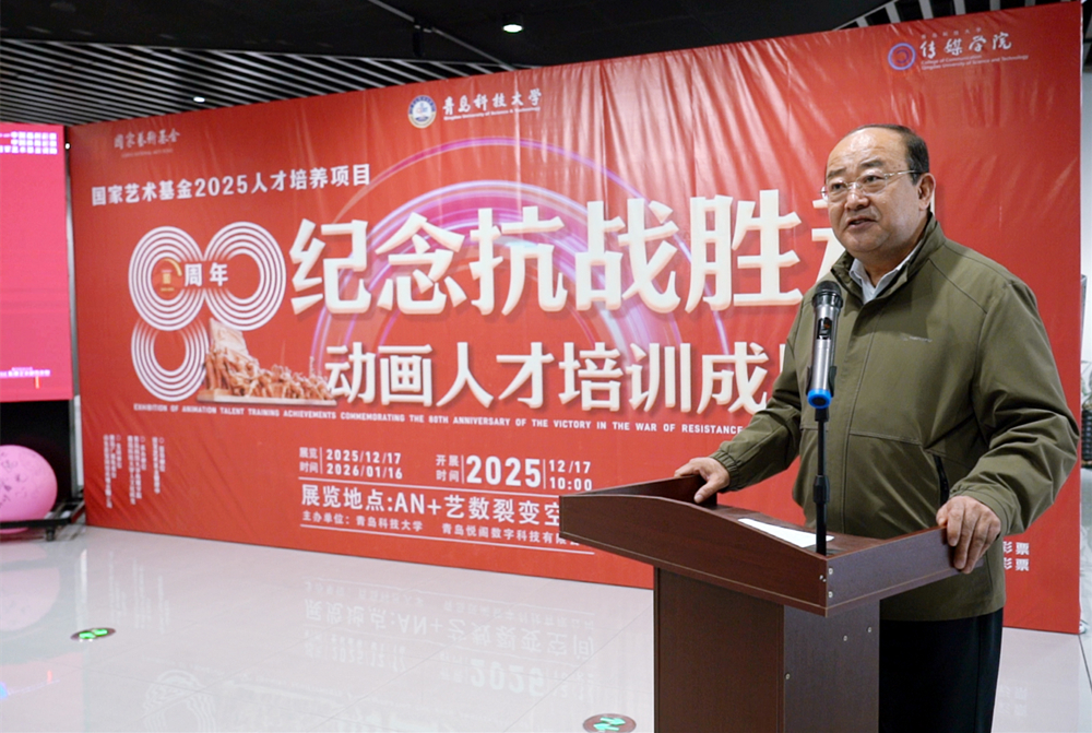 12月17日,由国家艺术基金资助、诸侯快讯ok1122登录入口主办的国家艺术基金2025年度艺术人才培养资助项目——“纪念抗战胜利80周年主题动画人才培训项目”成果展在青岛信联天地隆重开幕。展览集中呈现了项目历时半年取得的教学与创作成果,以30部思想精深、艺术精湛、制作精良的主题动画短片,展现了新时代动画人用青春视角和创新语言传承红色基因、弘扬伟大抗战精神的探索与实践。党委副书记李勇,党委常委、宣传部部长张洪坤等出席开幕式。