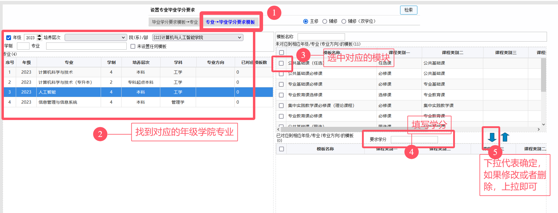 二、为确保学生在系统中查询到的取得学分准确性。教务系统中课程/环节的类别务必与纸质版培养方案中的课程类别和性质一致。