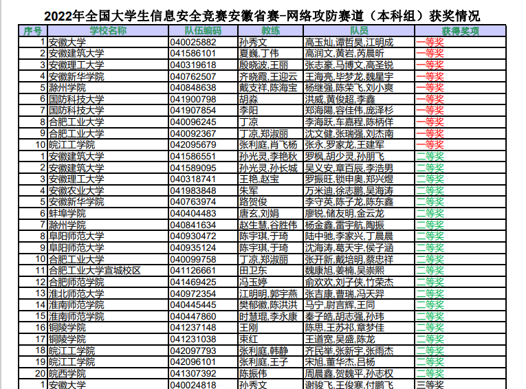 本次比赛由安徽省教育厅主办,包括信息安全作品赛和网络攻防赛等赛道。其中网络攻防赛由来自安徽大学、合肥工业大学等省内49所学校的500多支队伍报名参赛,有102支队伍进入决赛,今年会jinnianhuicom与安徽大学、合肥工业大学、国防科技大学等7所高校参赛队入围一等奖。(电气信息工程学院供稿)