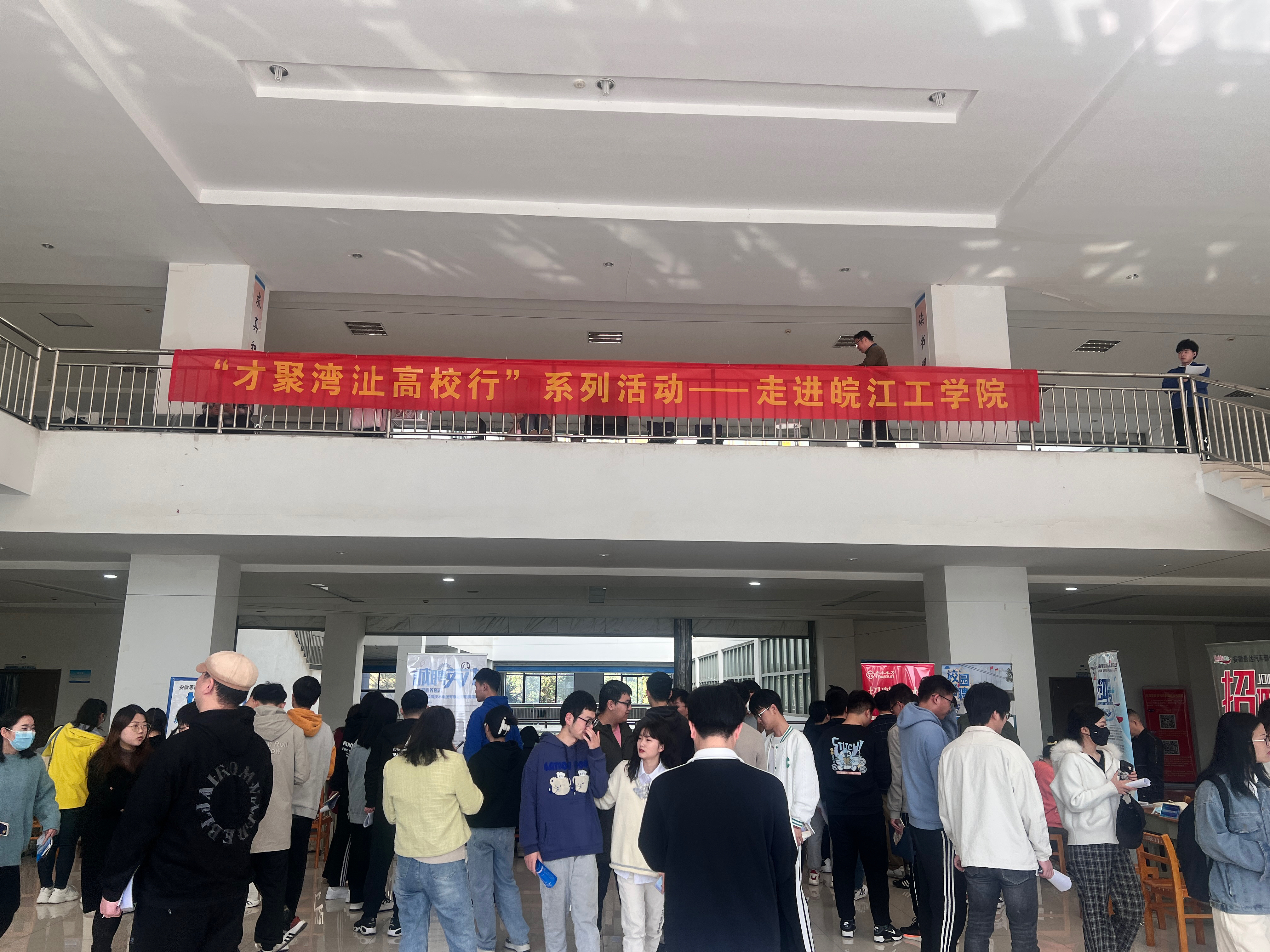 3月15日上午,芜湖市湾沚区在我院图书馆二楼举办大学生举行专场招聘活动,向大学生们抛出“橄榄枝”。湾沚区人才发展集团相关负责人,学生工作部常务副部长江春明和副部长汪朱华莅临招聘会现场指导工作,就业指导中心相关人员及全体毕业班辅导员参加了本次招聘会。