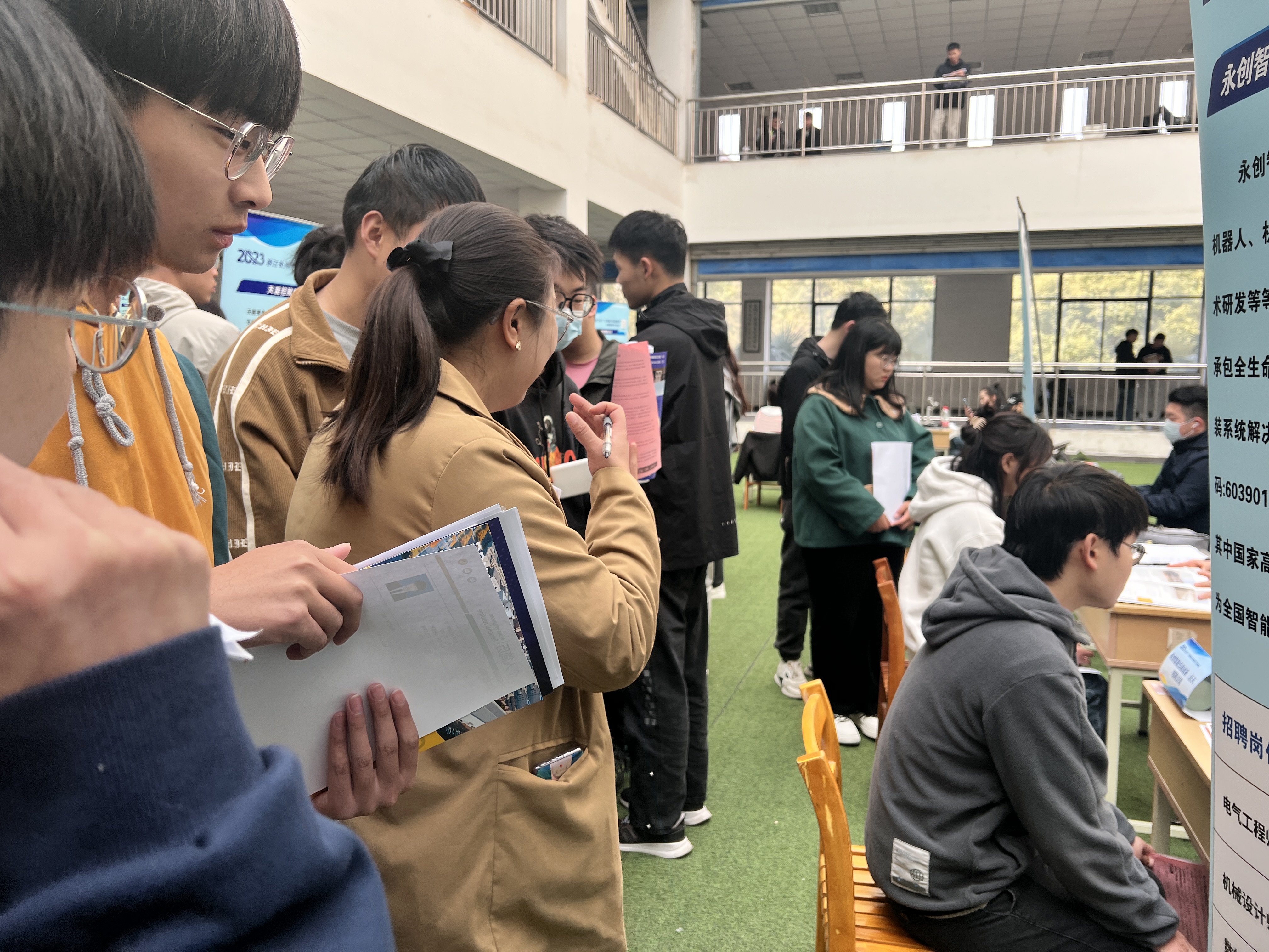为开启2023“才来长兴”新征程,深入构建校地协作联盟,实施“万岗纳才百校联招”专项行动,长兴政企代表团3月16日走进今年会,采取立体招聘三位一体的模式,即现场接洽+直播荐岗+云端直聘的方式,进行线下线上互联互通,共有35家重点企业现场接洽,130多家企业云端直聘,超5000个职位诚邀应聘。招聘现场气氛热烈、人头攒动,同学们手持简历,积极自信地与企业交流,毕业班辅导员们穿梭其间,积极搭建毕业生与企业沟通桥梁。