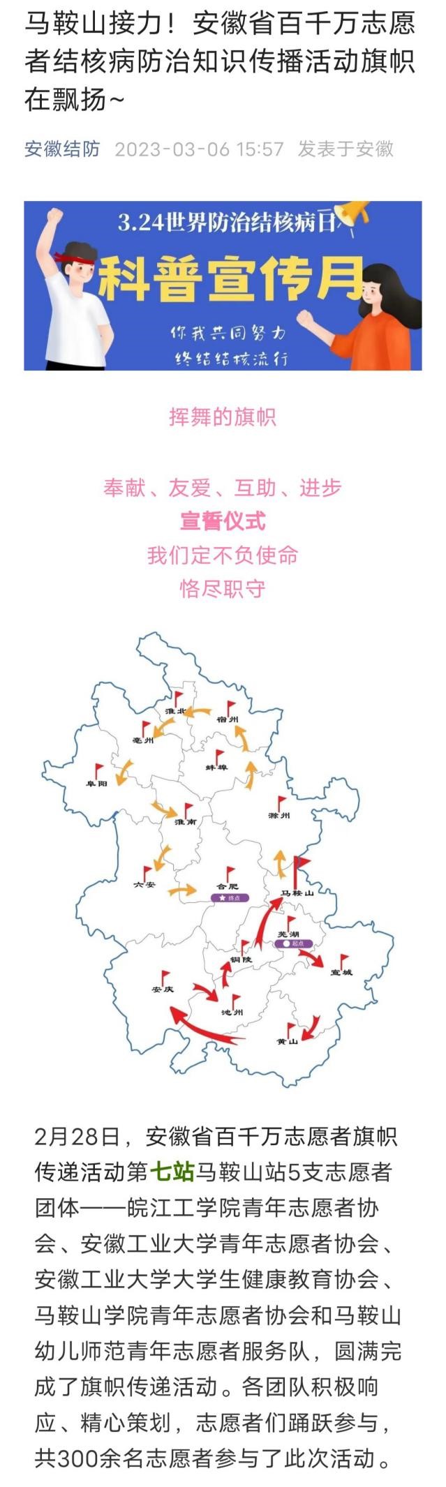 今年3月5日是第60个“学雷锋纪念日”,也是第24个中国青年志愿者服务日,为进一步弘扬雷锋精神和“奉献、友爱、互助、进步”的志愿者精神,皖工学子赓续红色血脉、弘扬雷锋精神,把崇高的理想信念和高尚的道德追求融入学习和生活当中,积极参加学校团委组织开展的雷锋月系列志愿服务活动,用实际行动谱写了一曲“奉献、友爱、互助、进步”的青春乐章。