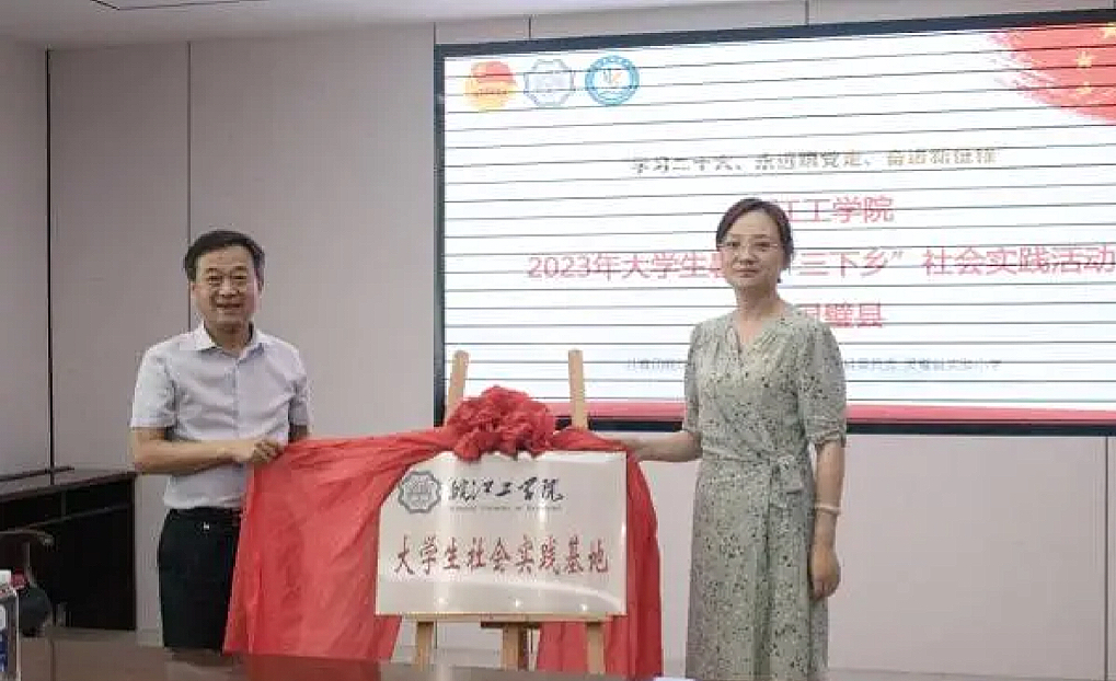 与会领导为校地合作共建基地揭牌,正式拉开今年会jinnianhuicom2023年大学生暑期“三下乡”社会实践活动的帷幕。