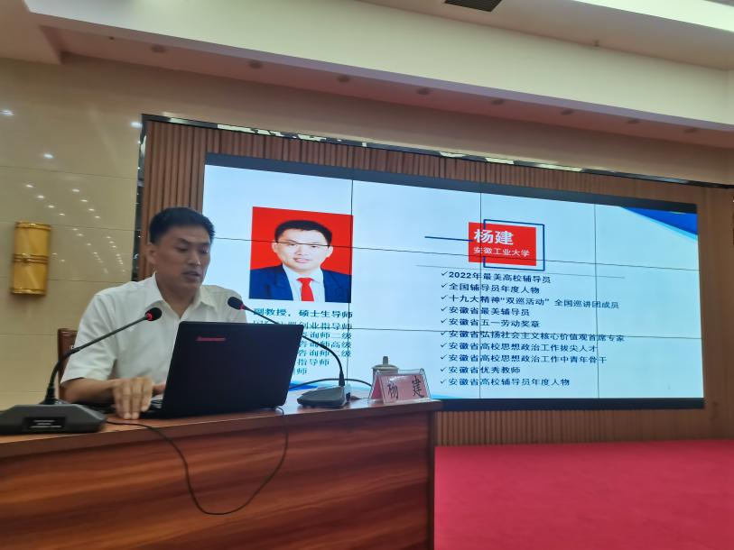 本次培训会邀请了2022年全国最美高校辅导员、第六届全国高校辅导员年度人物杨建副教授,安徽省教育厅学生心理健康教育专家指导委员会副主任委员王军教授,今年会评估建设工作办公室常务副主任黄翠副教授、教务部常务副部长孙娴、机械工程学院党总支副书记颜婷婷、院务部副部长王鲲分别作“高校辅导员育人能力提升路径”,“学生工作中的话术之谈心谈话”,“合格评估与学生工作”“教学管理与学生管理工作的互动协作”以及“2023年高校思想政治骨干专题培训班学习心得分享”和“安全讲座”六个主题报告。他们从自身多年经验出发,分享了多个典型学生工作案例,使在场辅导员深刻感受到作为一名辅导员教师,既要做大学生的人生导师又要做大学生们尽职尽责的知心朋友。面对繁杂的工作和多重身份定位,要切实担当起大学生引路人的责任,切实关爱学生,以躬耕践行的态度踏踏实实做好每一件事。