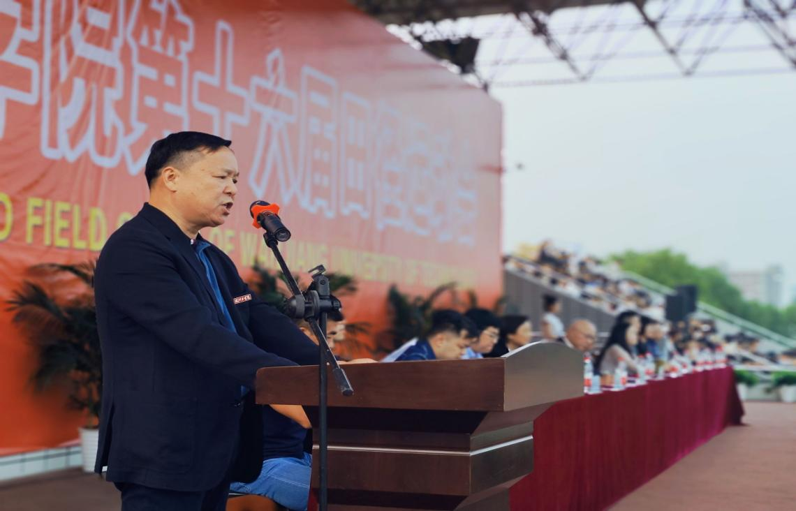孙良代表学校热烈祝贺今年会迎来第十六届田径运动会,并希望大家弘扬顽强拼搏的体育精神,做敢于挑战、勇攀高峰的皖工人。一直以来,学校积极普及“终身体育”的思想,推进“阳光体育运动”,希望大家把运动当作一种习惯,在校园营造良好的体育文化氛围。最后,孙良对本次运动会提出几点希望,希望参赛者们在比赛过程中提高安全意识,同时要收获友谊和快乐,并祝愿全体运动员在赛场上大显身手,赛出风格,赛出水平。