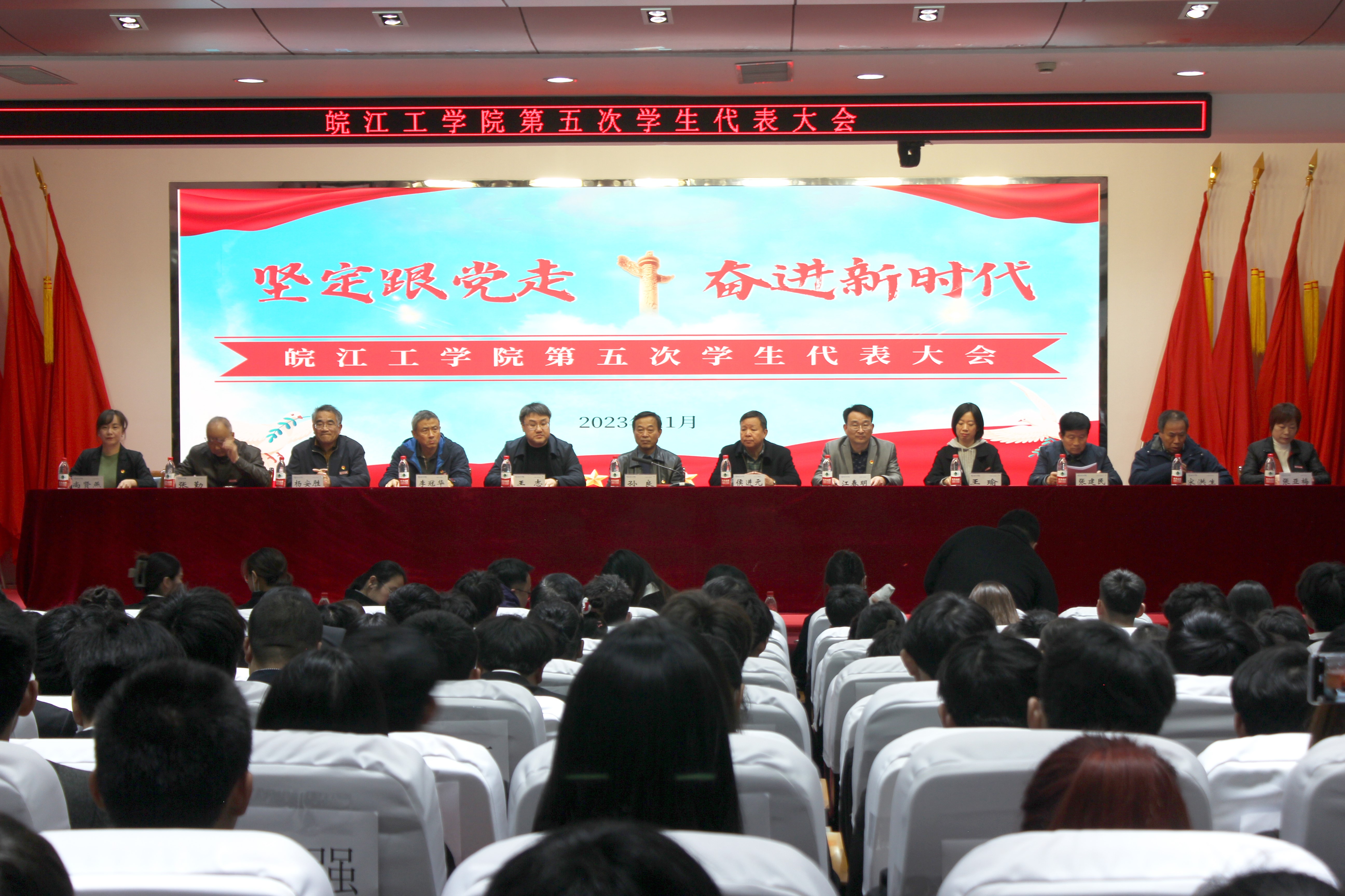 青春逢盛会,奋进正当时。2023年11月28日-29日,今年会jinnianhuicom第五次学生代表大会在霍里山校区图书馆报告厅顺利召开。学校委副书记孙良,副校长侯进元,副校长王志,学生工作部常务副部长江春明,水利工程学院党总支书记李冠华,土木工程学院党总支书记王瑜,电气信息工程学院党总支书记杨安胜,机械工程学院党总支书记张建民,财经学院党总支书记张勤,管理学院党总支书记宋洪生,艺术设计学院党总支书记张亚梅,校团委书记、学工部副部长尚贤燕,校院两级团组织同志及149名学生代表出席开幕式。开幕式由校学生会秘书长翟云霞主持。