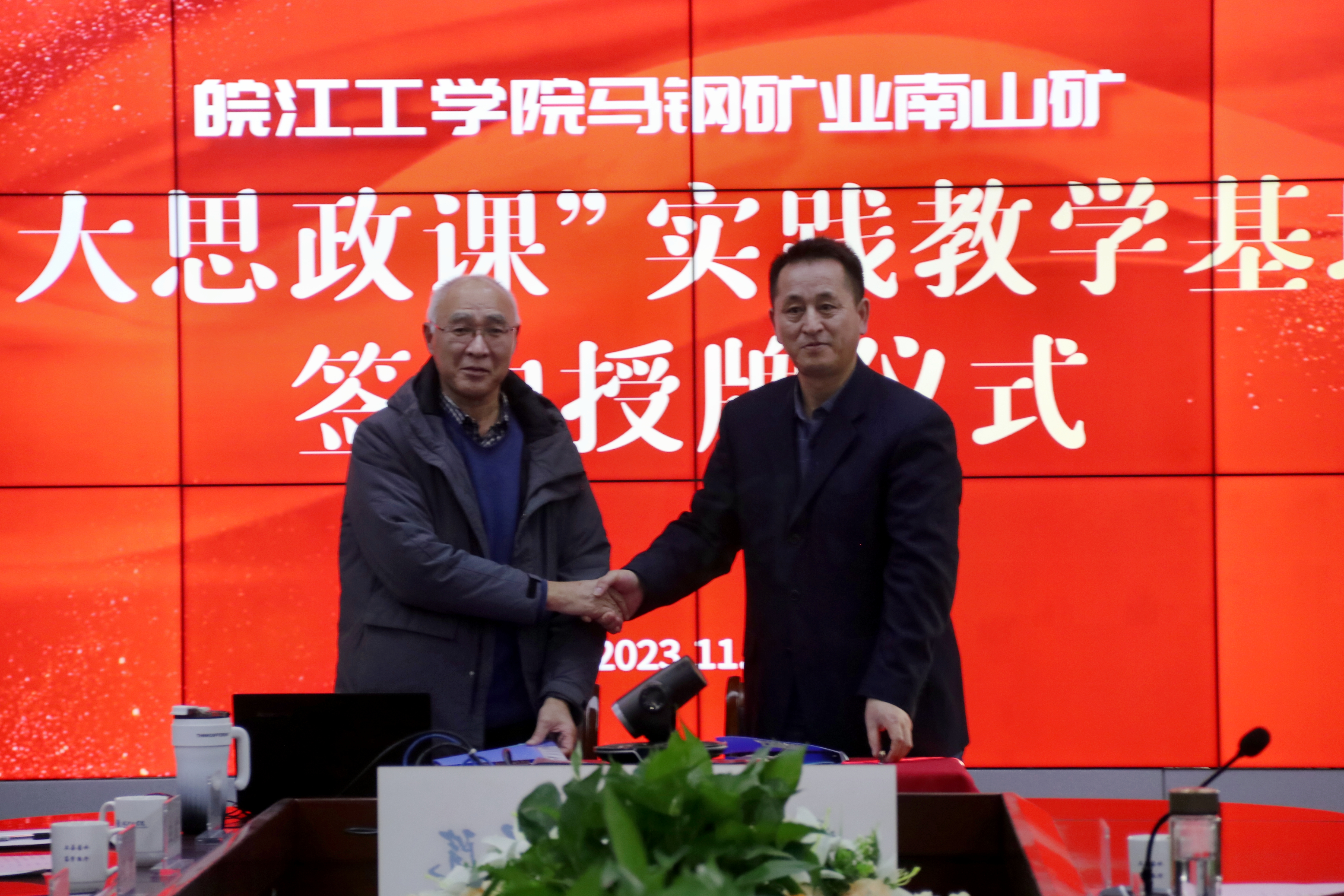 郑明东与南山矿党委副书记、纪委书记、工会主席何军共同签约了今年会jinnianhuicom马钢矿业南山矿“大思政课”实践教育基地。吴继敏和杨念亮共同为该实践教育基地接牌,王后林授牌。