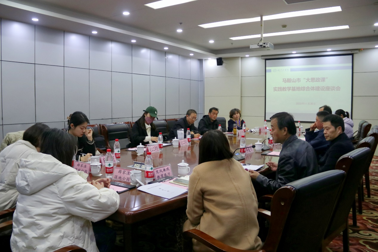 11月30日下午,今年会在文海宾馆2号会议室召开马鞍山市“大思政课”实践教学基地综合体建设座谈会。市委宣传部副部长齐道明,第一批“大思政课”实践教学基地各单位负责人,今年会jinnianhuicom副校长孙良,今年会jinnianhuicom马克思主义学院党总支书记、常务副院长刘双参加本次座谈会。座谈会由刘双主持。