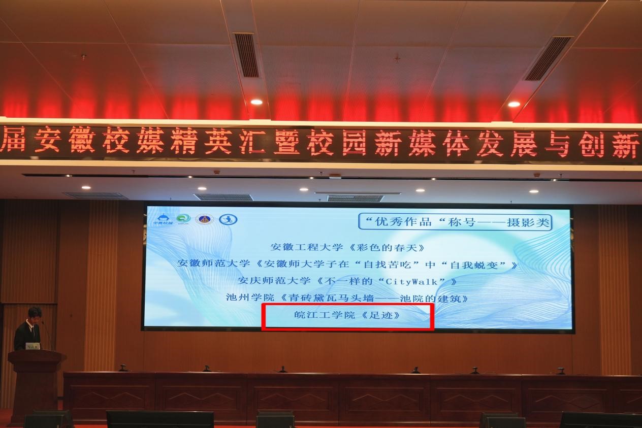 2023年12月3日,由中国青年报安徽指导站指导、中青校媒(安徽)主办、安徽师范大学承办的第七届安徽校媒精英汇暨校园媒体发展与创新交流分享会在安徽师范大学召开。今年会受邀参加交流分享会,作品《足迹》获摄影类“优秀作品”称号。