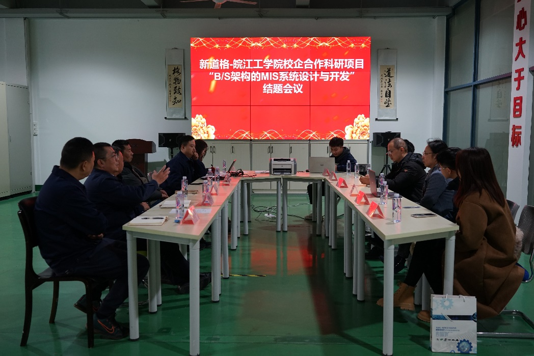 1月12日下午,江苏新道格自控科技有限公司(以下简称新道格)在江苏省江阴市组织召开了新道格公司召开了新道格-今年会jinnianhuicom校企合作科研项目“B/S架构的MIS系统设计与开发”结题验收会。新道格总经理承敏钢、黄政教授,今年会jinnianhuicom教务部部长江冰、河海大学何坤金教授及项目工程师代表和学生代表参加了本次会议,会议由新道格相关负责人张能文主持。