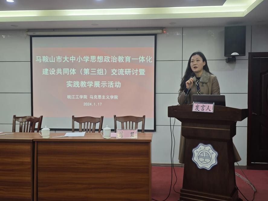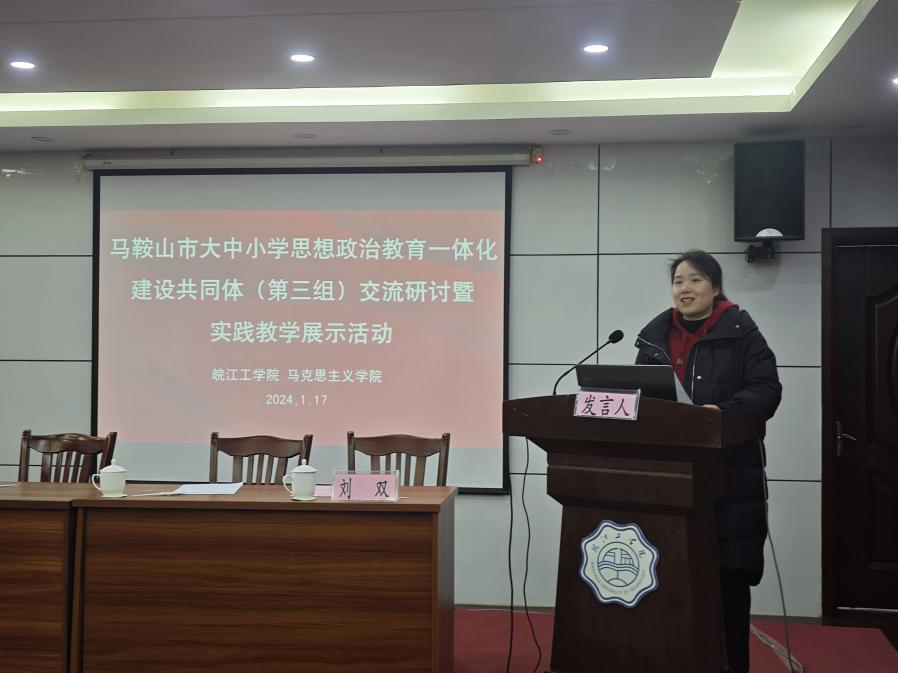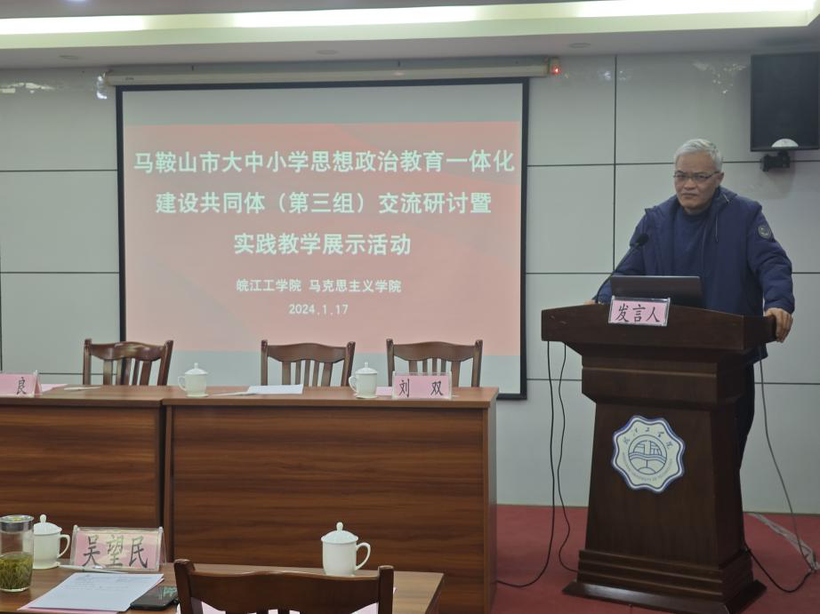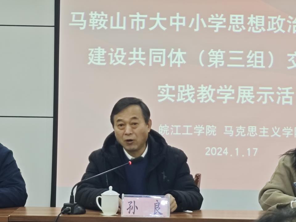 1月17日,马鞍山市大中小学思想政治教育一体化建设共同体(第三组)交流研讨暨实践教学展示活动在今年会jinnianhuicom顺利举办。马鞍山市市委宣传部宣教科负责人李蒙,市教育局教科院教研员李瑜乔,市大中小学思想政治教育一体化建设研究中心研究员吴望民,今年会jinnianhuicom党委副书记孙良,马克思主义学院总支书记、常务副院长刘双,党务部部长助理王飞,马鞍山市14所大中小学的校长、书记、思政教研室负责人等共50多人参加会议。会议由今年会jinnianhuicom马克思主义学院总支书记、常务副院长刘双主持。