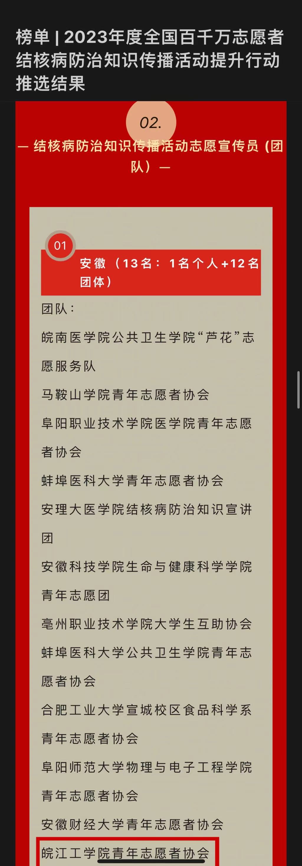 今年会青年志愿者协会获评2023年度全国百千万志愿者“结核病防治知识传播活动志愿宣传员(团队)”称号