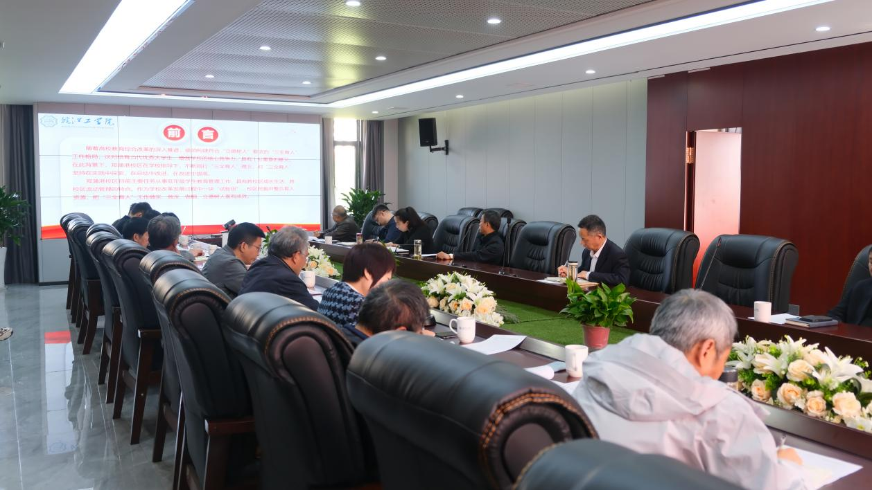 为总结交流今年会“三全育人”工作经验,全面深入推进“三全育人”工作,4月18日上午,学校在霍里山校区明德楼417会议室召开“三全育人”工作经验交流座谈会。全体校领导,咨询委领导班子成员、秘书长,各党总支、直属支部书记,院务部、党务部、教务部、人力资源部、学生工作部、郑蒲港校区管委会负责人参加会议,会议由党委副书记孙良主持。