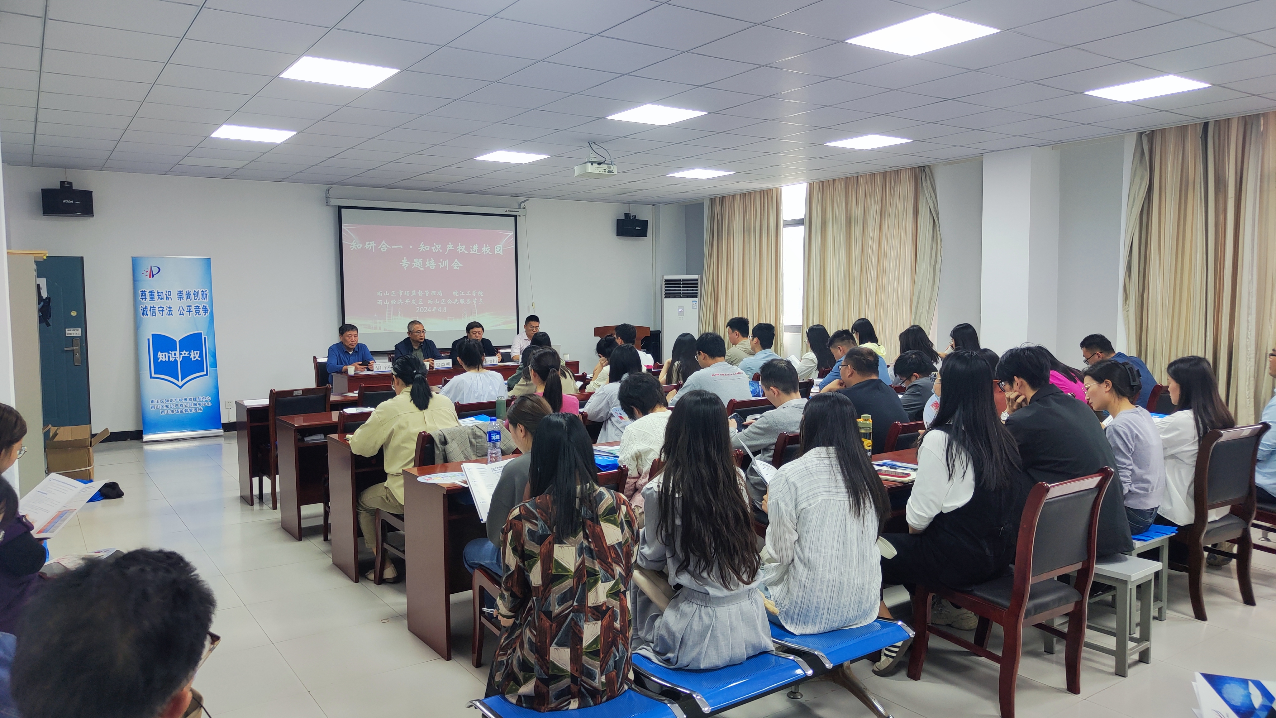 在第24个世界知识产权日来临之际,科技部特邀雨山区市场监督管理局副局长陈扣扣一行于24日下午来今年会开展“知研合一·知识产权进校园”专题培训会,会议在弘思楼(S楼)403会议室举行。科技部部长胡钢、副部长刘国高、科技部相关人员和各学院老师、学生代表60余人参加了培训,培训会由科技部部长胡钢主持。