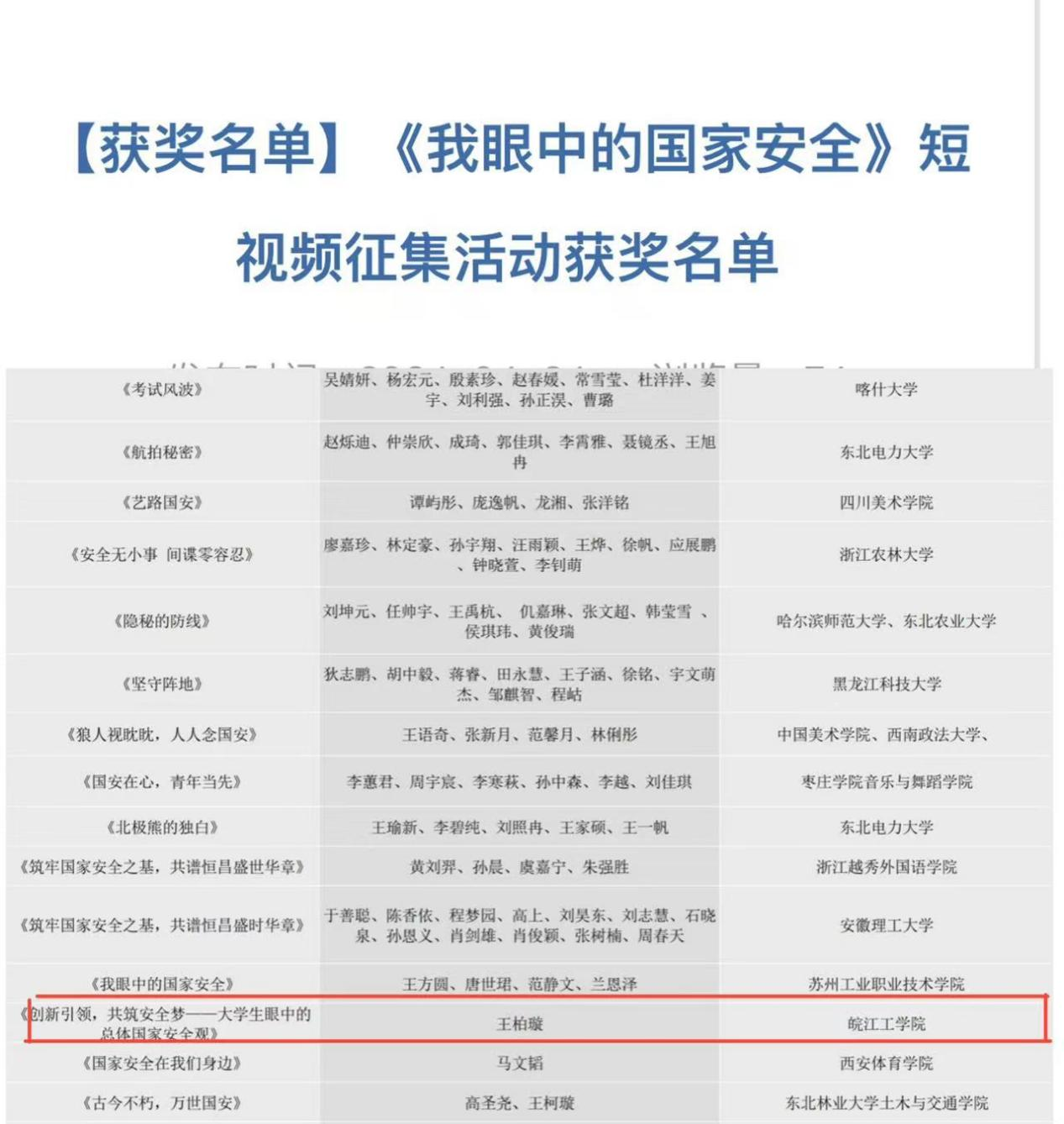 今年会作品在首届大学生《我眼中的国家安全》 短视频大赛中荣获优秀奖