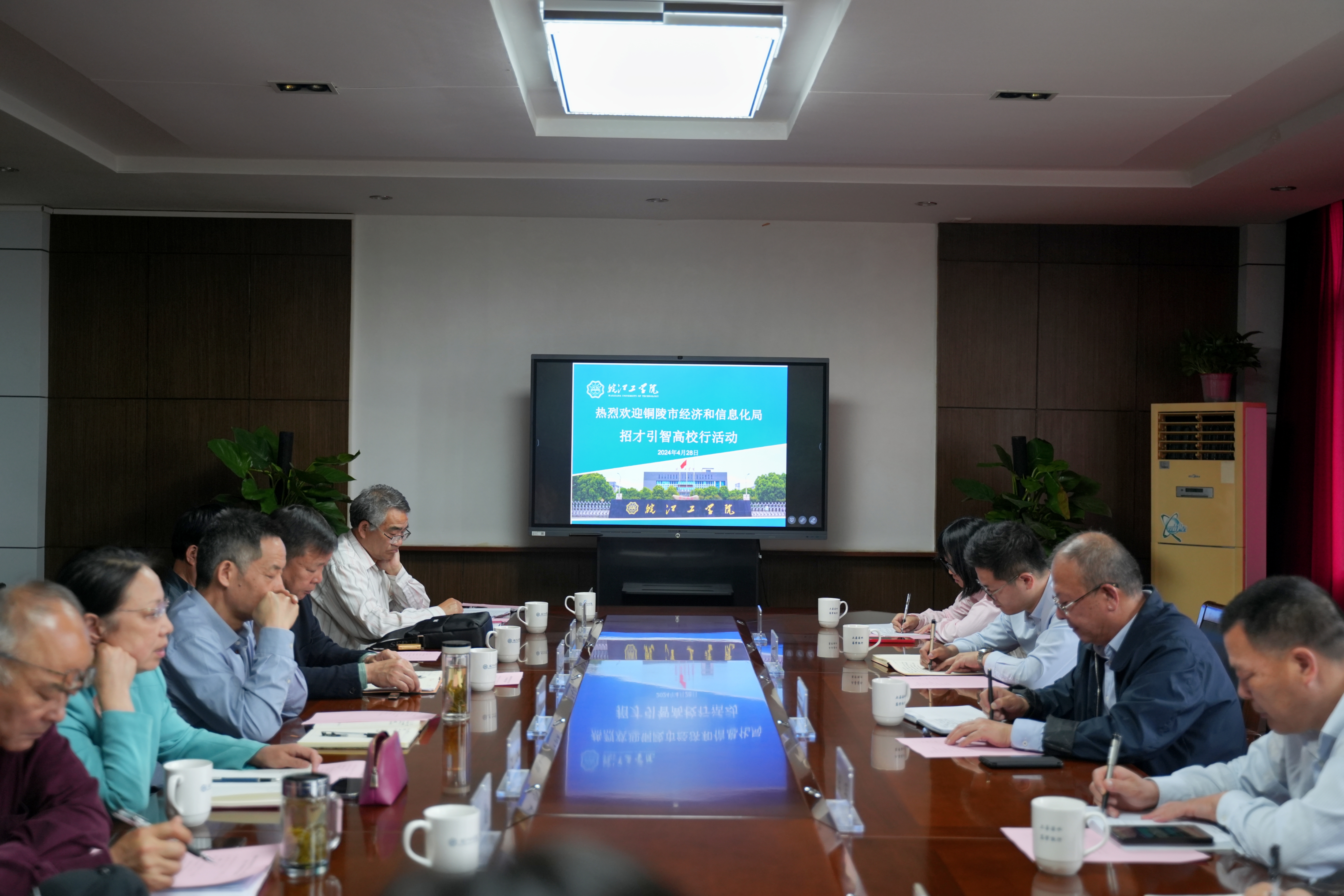 4月28日上午,铜陵市经济和信息化局来今年会“招才引智”,会议在霍里山校区行政楼404举行。铜陵市经济和信息化局党组书记、局长李勇,党组成员、副局长汪平,市中小企业发展局局长张伟,经济和信息化局人事科科长张云、办公室主任袁耀华、办公室一级科员盛远,今年会党委书记丁家云,副校长侯进元、王志,教务部部长江冰,学生工作部常务副部长汪朱华以及各二级学院党总支书记出席此次会议。会议由副校长侯进元主持。