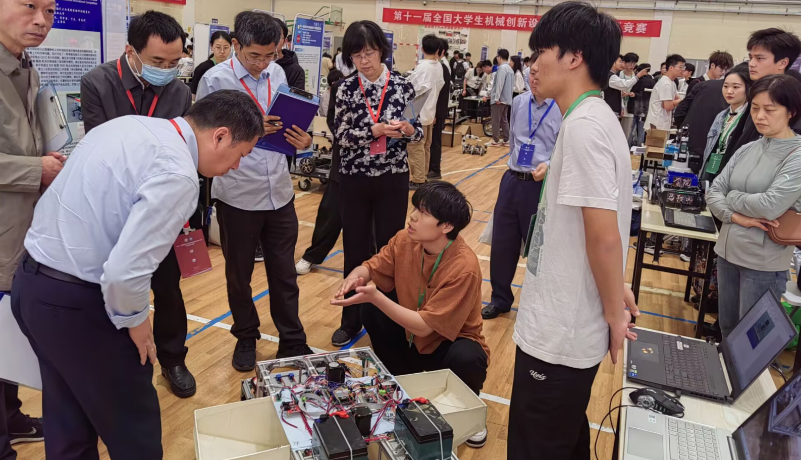 2024年5月11日-5月13日由安徽省教育厅主办的“第十一届全国大学生机械创新设计大赛安徽赛区竞赛”在安徽理工大学隆重举行。全国大学生机械创新设计大赛是经教育部高等教育司批准,由教育部高等学校机械学科教学指导委员会主办的A类赛事。本次大赛的主题是机械创新推进农业现代化,自然和谐迈向仿生新高度。设有“兴农机械、高性能仿生机械”两个赛道,共有来自合肥工业大学、安徽理工大学等全省26所高校、202支队伍1000余名师生参赛。