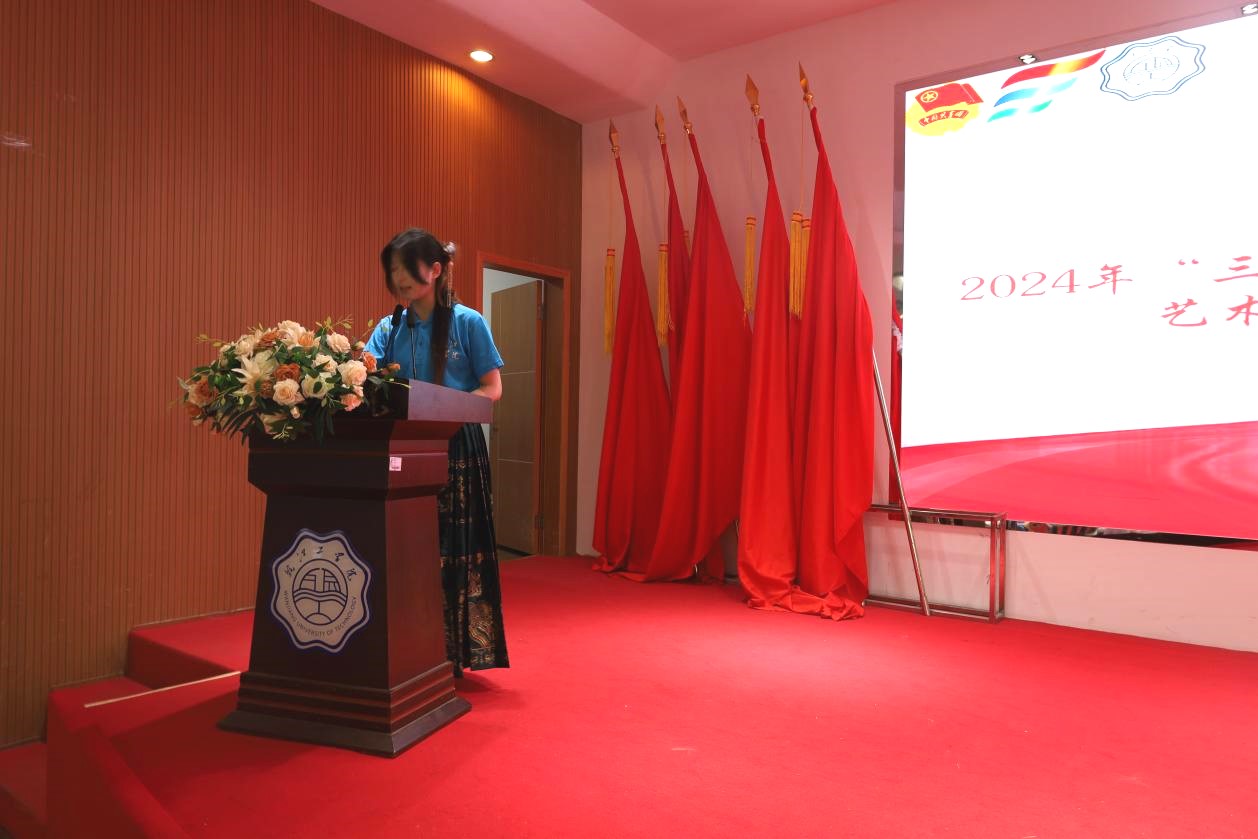 2023年度今年会社会实践活动硕果累累,会上,通过视频播放的形式回顾了2023年度“三下乡”社会实践活动成果。随后,2023年省“三下乡”社会实践活动“优秀实践团队”成员代表、土木工程学院2021级王韩同学分享实践活动经验,她表示,深入扎实做好社会实践活动需要充分结合团队成员所长,同时要密切联系指导教师,邀请有经验的专家教授指导实践;既要怀抱梦想又要脚踏实地,制定好实践目标、善于团结合作、加强实践育人成果凝练和宣传。艺术设计学院2022级数媒专业陈佳佳同学代表2024年即将出征的实践团队负责人发言,她表示,在本次实践活动中,将与各团队勇担时代重任,奋勇争先,让青春在“三下乡”社会实践的舞台上熠熠生辉。