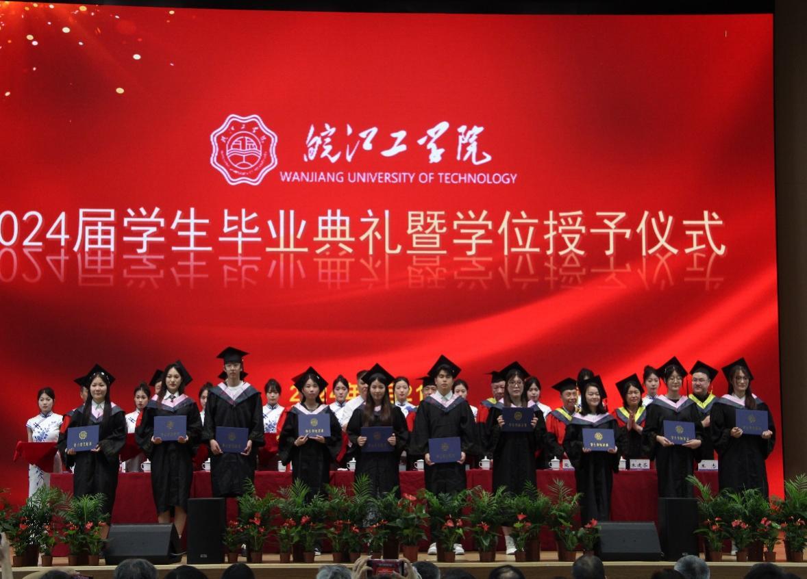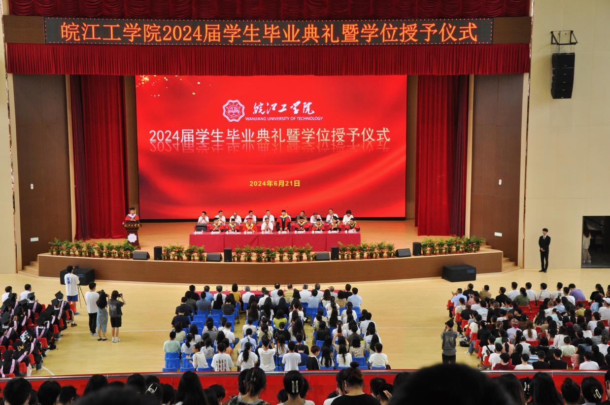 毕业典礼在毕业视频《记忆留“夏”,皖工有你》及斗志昂扬的国歌中毕业典礼正式拉开帷幕。