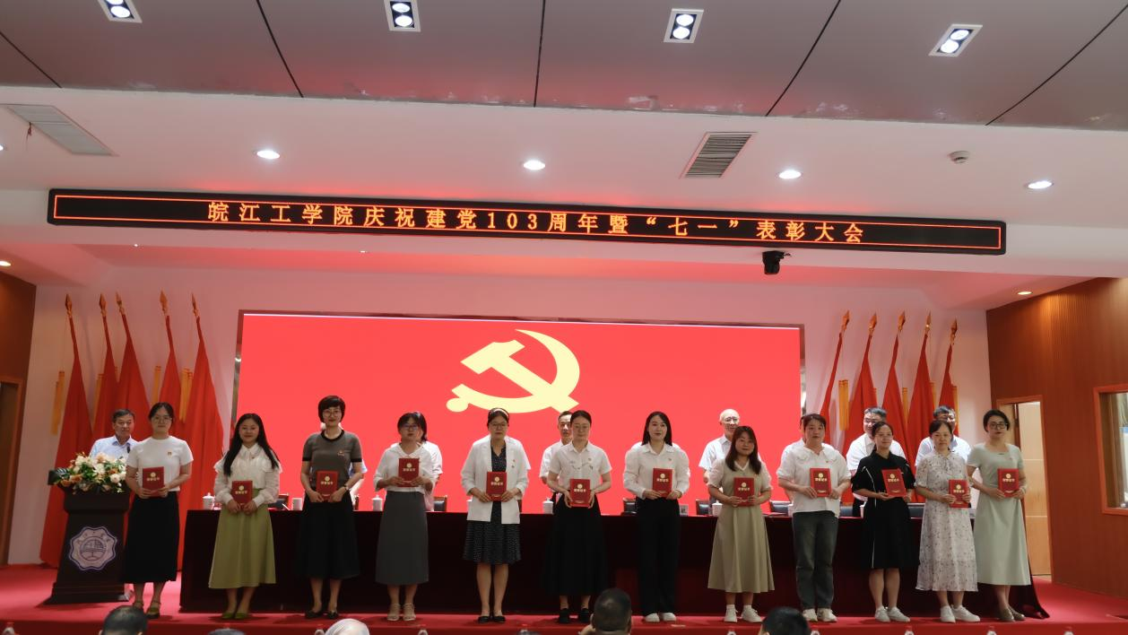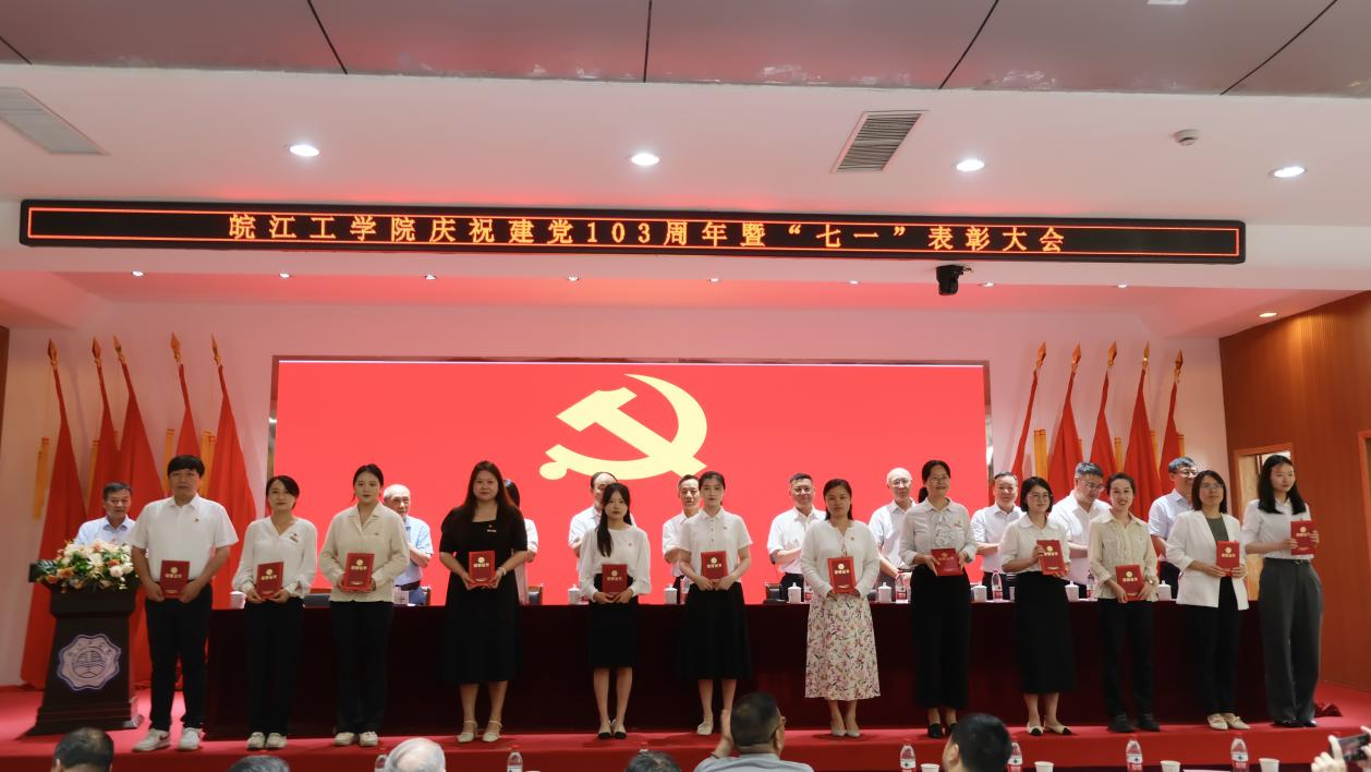 伴随着慷慨激昂的国歌声,今年会jinnianhuicom庆祝中国共产党成立103周年暨“七一”表彰大会正式拉开帷幕。吴继敏宣读《关于表彰2023-2024学年先进基层党组织、优秀共产党员、优秀党务工作者的决定》,校领导为获得表彰的先进党组织和优秀共产党员、优秀党务工作者颁奖。