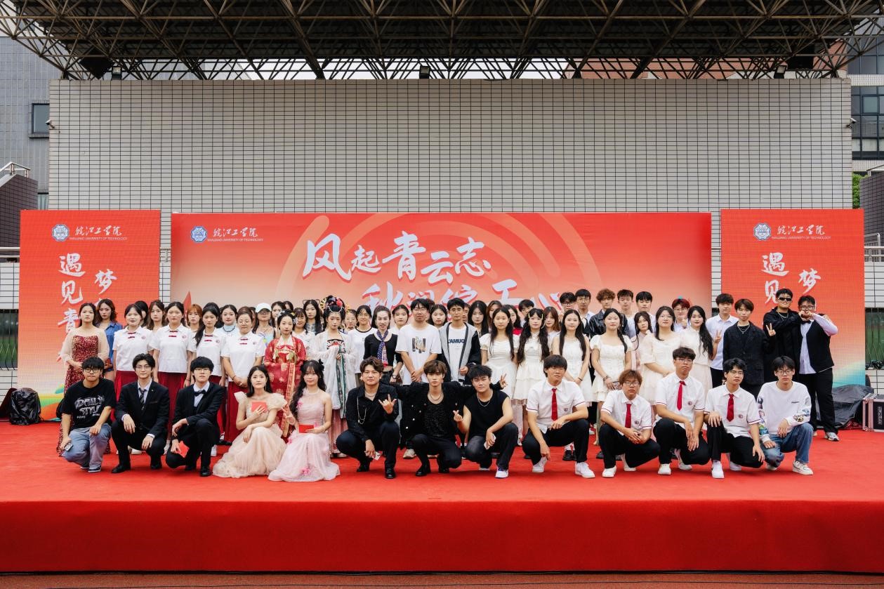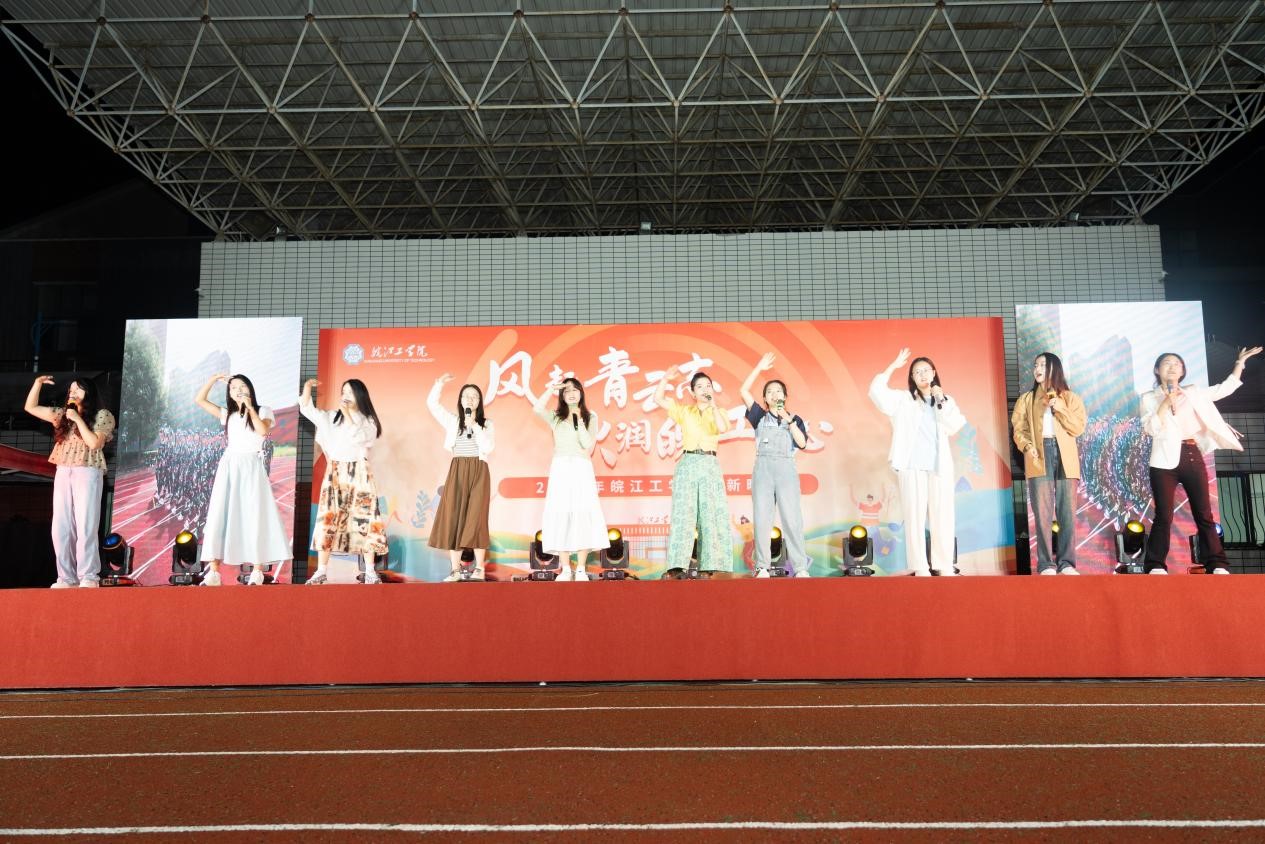 晚18:30时整,伴随着铿锵有力、气势磅礴的乐声响起,晚会在民乐、舞蹈《飞舞千年》中拉开帷幕。晚会分“遇见青春”、“梦想启航”两个篇章,涵盖歌曲、舞蹈、汉服走秀、合唱、乐器演奏等多元表演形式。全体演出人员共同表达赤诚爱国爱校情怀,他们以精湛的艺术演出,为新生树立了自立自强、实干笃行的典范,燃动了每一名在场观众的心。合唱《逆光》犹如一股春风,吹拂着每一位皖工学子的心田,激发起他们为实现梦想而奋斗的勇气。激情四溢的新生辅导员歌唱节目《new boy》传递出皖工师生与时代同频共振的担当精神。倾情演唱的歌曲《默》、《我好像在哪见过你》、《第一天》震撼全场,演绎出青年学子的意气轩昂,诠释出青春的别样定义。舞蹈《Klaxon》、《armageddon》引燃全场,展现新时代青年的生机与活力。歌曲《学不会》的每一个音符都化作同学们心中的光芒,照亮逐梦路上的点滴希望。汉服走秀表演《水龙吟》将古典元素与现代舞姿完美结合,心中有丘壑,眉目作山河,诠释了华夏少年对祖国的深切热爱。三人唱歌表演《阿嫲》带领观众感受红军坚韧不拔的意志、永不磨灭的功绩,讲述了先辈们赤胆忠心、无私奉献的故事,激励皖工学子磨砺出挺膺担当的品质。