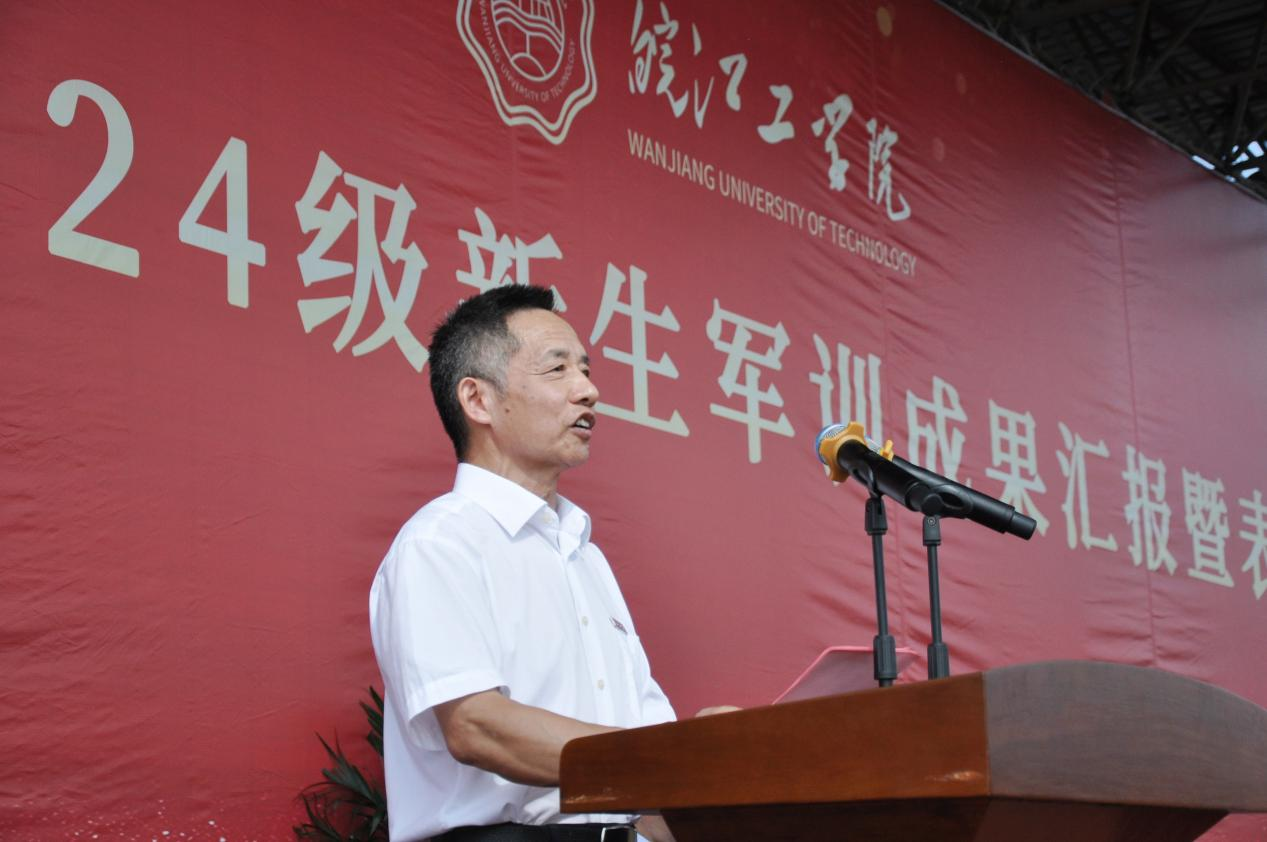 丁家云作总结讲话。他代表学校党委、行政,向全体教官表示衷心的感谢,向为军训付出辛勤努力的老师们表示诚挚的问候,向圆满完成军训任务的同学们表示热烈的祝贺! 他指出,同学们应把军训当作大学生活的一个良好开端,希望同学们珍惜大学第一课所取得的成果,并对各位同学在今后的大学生活中提出三点建议:一要立德修身,学会做人,努力做一个品德高尚的人;二要立学致知,学会学习,努力做一个善于学习的人;三要知行合一,学会担当,努力做一个勇担责任的人。希望同学们学会担当,探究真学问,练就真本领,知行合一,学以致用,不辱时代使命,不负人民期望。