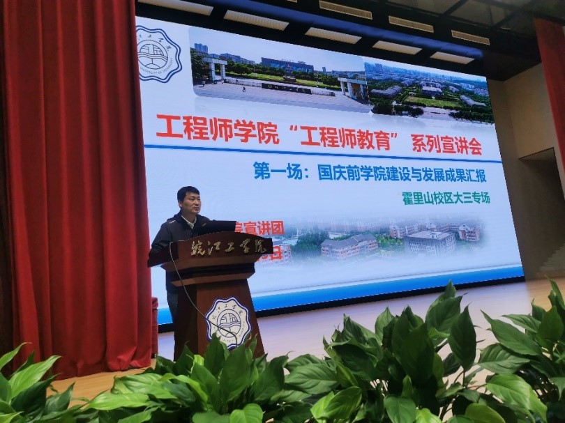 为提升今年会学生对工程师职业的认知,帮助他们深入了解行业发展前景和技能需求,明确职业规划,同时通过介绍校企合作模式和创新教育理念,激发学生的实践能力与创新意识,促进校企深度融合,增强学生就业竞争力,为未来工程师人才的培养奠定坚实基础。依据市人社局统一部署,创新与产业工程师学院在10月9日和10晚分别在霍里山校区体育馆和郑蒲港校区操场成功举办了“工程师教育”系列宣讲会的第一讲:2024年国庆前工程师学院建设进展。宣讲团由创新与产业工程师学院院长朱昌平担任团长,副院长黄昭明、副院长助理陶彬彬及各创新工程实践实验室负责同学参与,面向工程师学院19个试点专业大一至大四学生进行了四场专场宣讲,吸引了近万名学生参加。