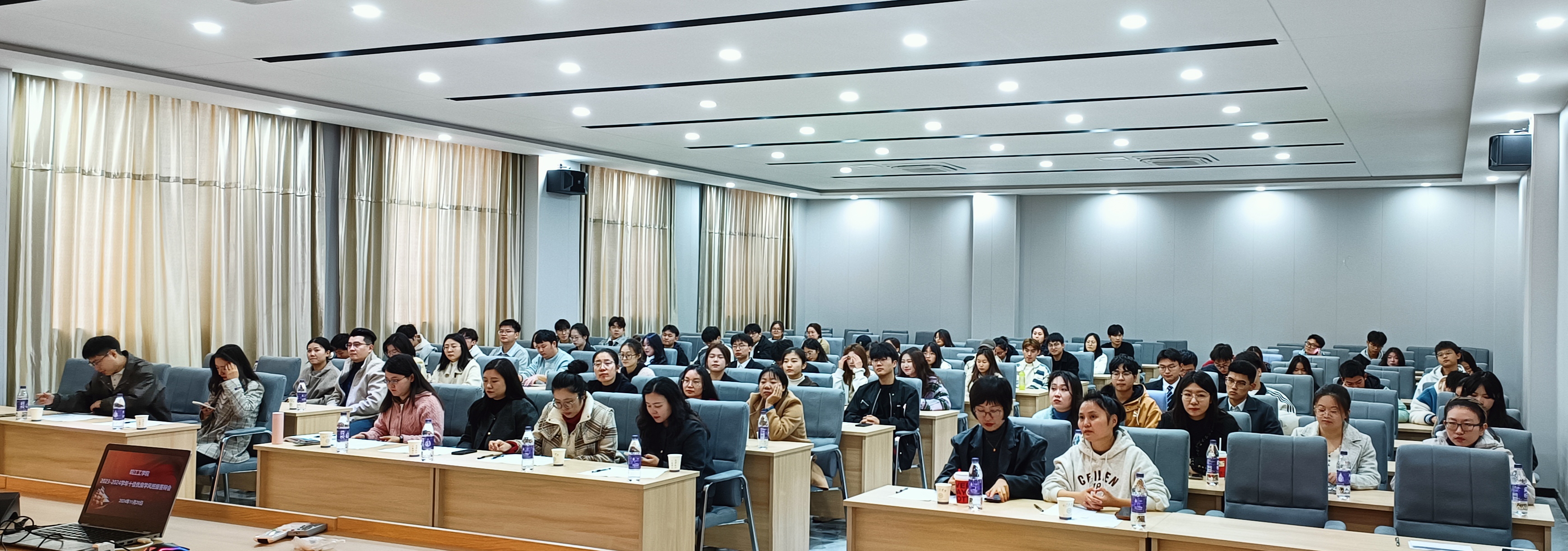 为推进学校班级建设、促进优良班风学风的形成,11月20日,学校在霍里山校区水木楼西301学术报告厅举行了2023-2024学年十佳优良学风班级答辩会。各二级学院副书记和分团委书记担任评委,16个候选班级参与答辩,100余名班干部代表到场观摩。