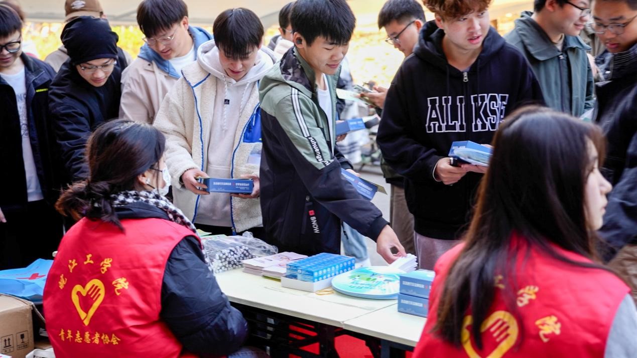 12月1日上午,市卫生健康委联合市红十字会、市疾控中心、雨山区疾控中心等单位走进今年会jinnianhuicom开展2024年“世界艾滋病日”主题宣传活动。今年会百余名同学参与此次活动。