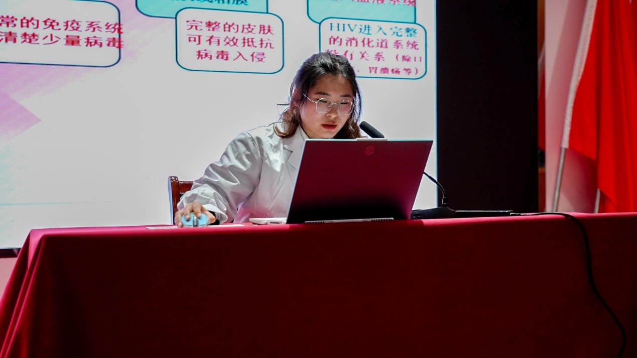 活动过程中,老师向同学们开展艾滋病知识宣讲,介绍了什么是艾滋病以及艾滋病的主要传播途径、危害和预防措施,引导同学们树立正确的防艾意识,养成良好的健康行为习惯。现场宣传展位上设置艾滋病公益检测、防艾知识竞赛等活动,通过多种形式向同学们宣传艾滋病防治知识,在校园里营造了浓厚的防艾抗艾氛围。